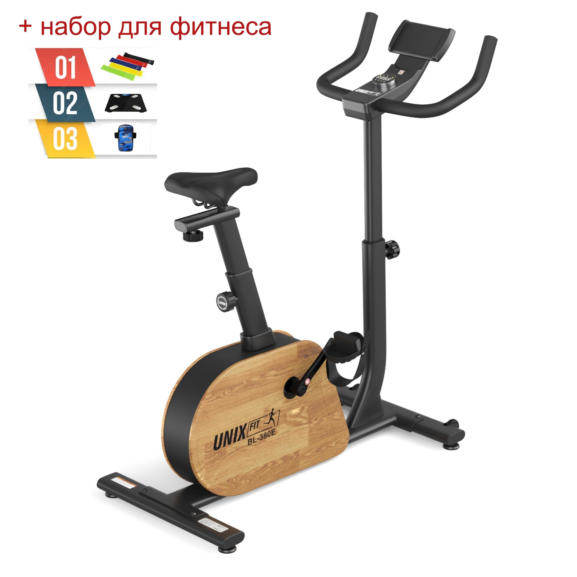Велотренажер генераторный UNIX Fit BL-380E Wood + набор для фитнеса интересное: