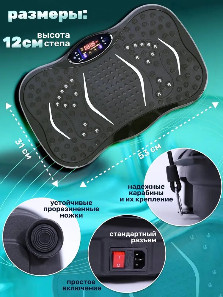 Виброплатформа тренажер для похудения, 120 скоростей, до 155 кг, 5 программ, интересное: