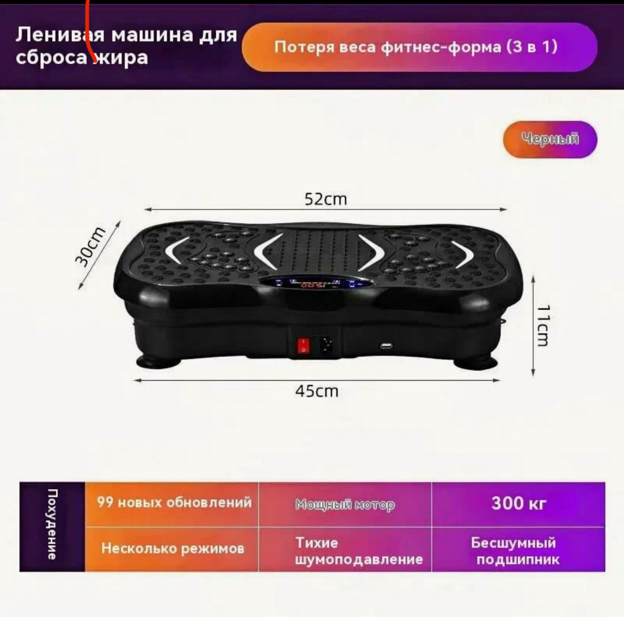 Виброплатформа для похудения, металл и пластик, 99 скоростей, 5 программ, черная интересное: