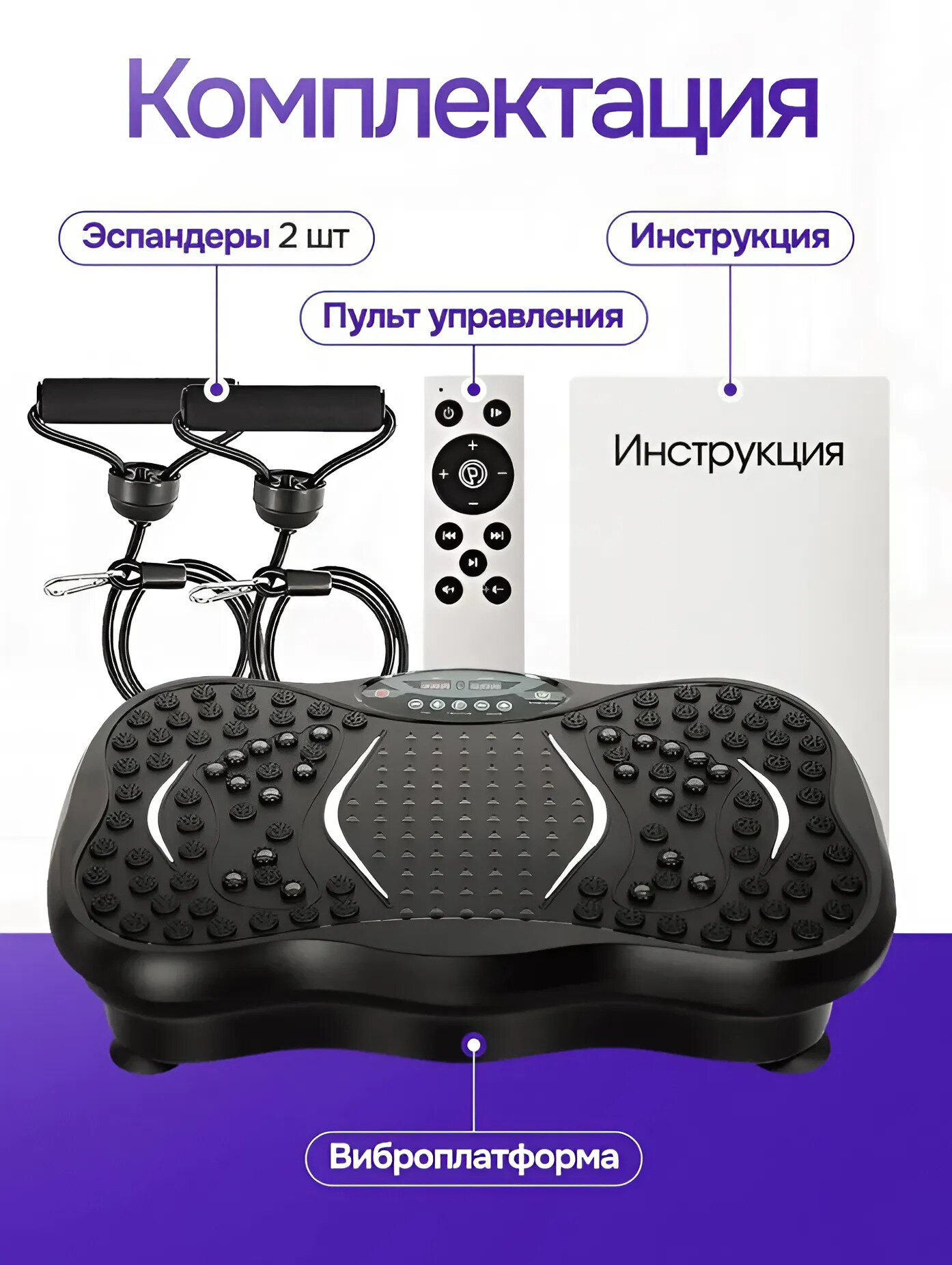 Виброплатформа для похудения с эспандерами и Bluetooth до 150 кг интересное: