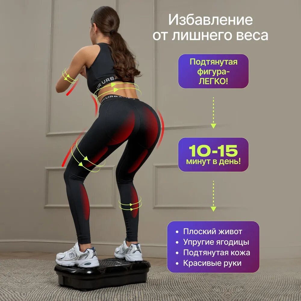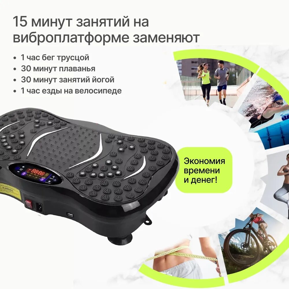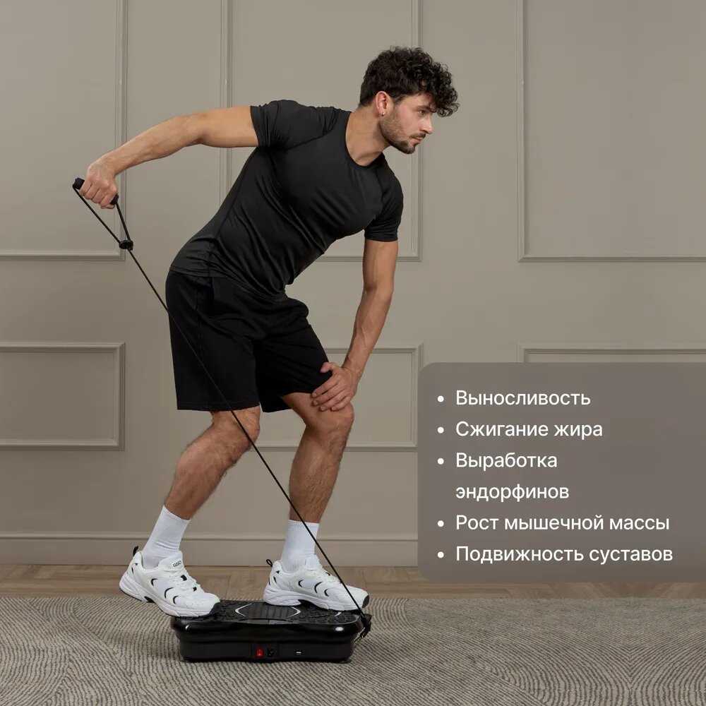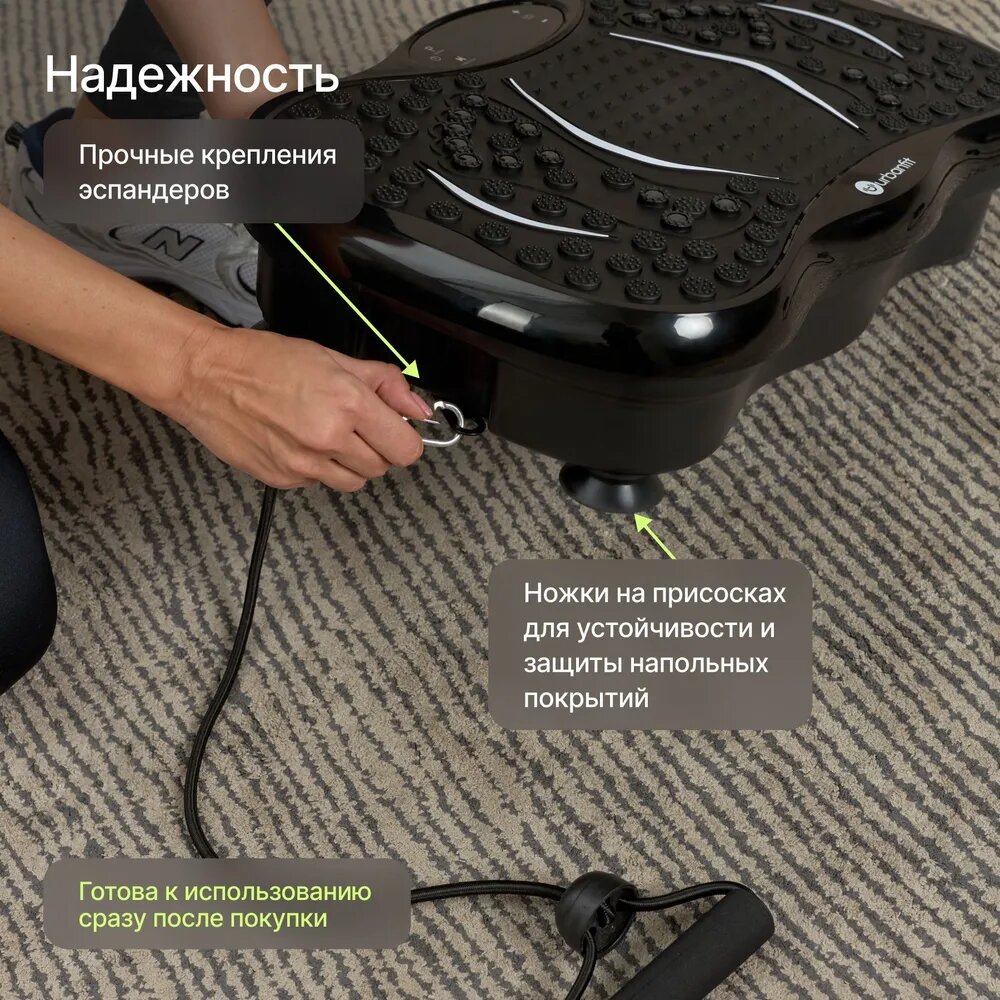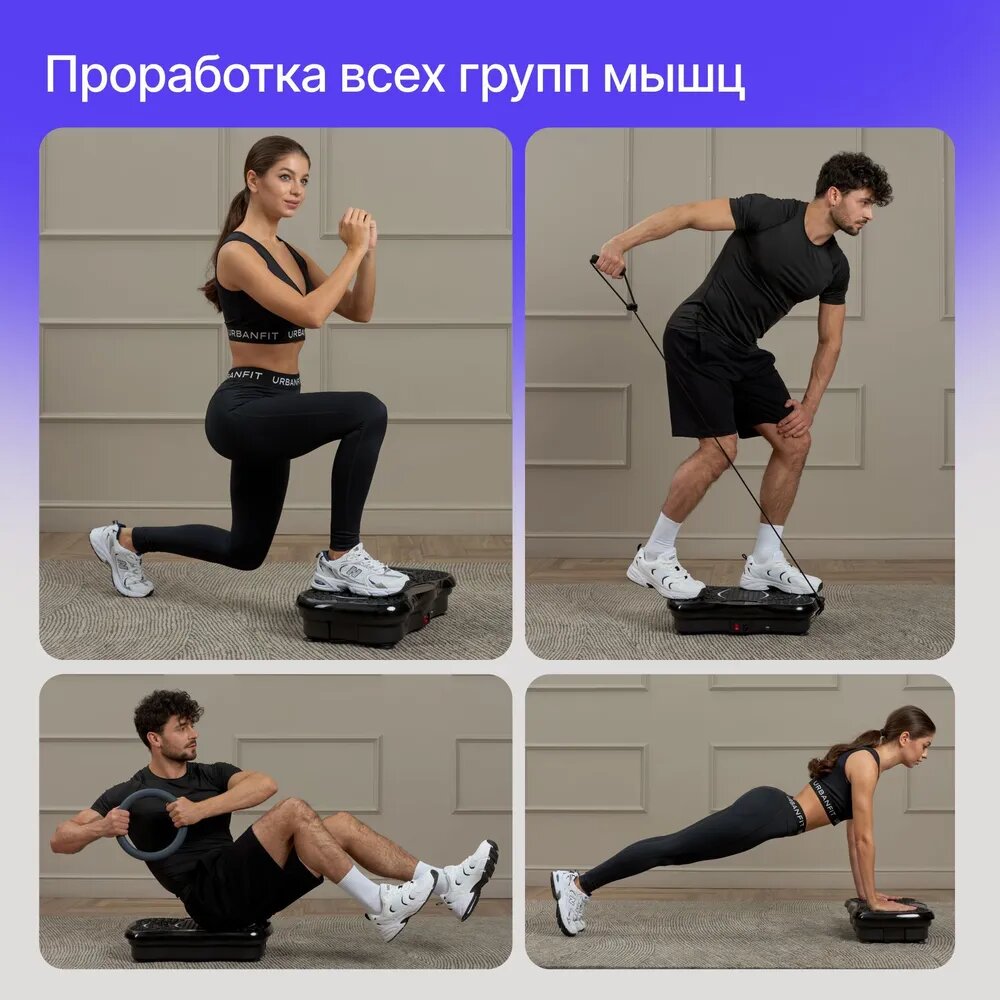Виброплатформа Urbanfit с bluetooth, эспандерами и пультом ДУ, 120 скоростей, 5 режимов, черный интересное: