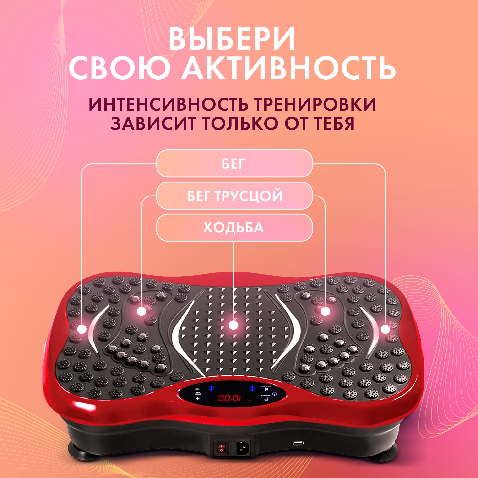 Виброплатформа тренажер с гибкой настройкой и bluetooth / Виброплатформа для похудения до 150 кг