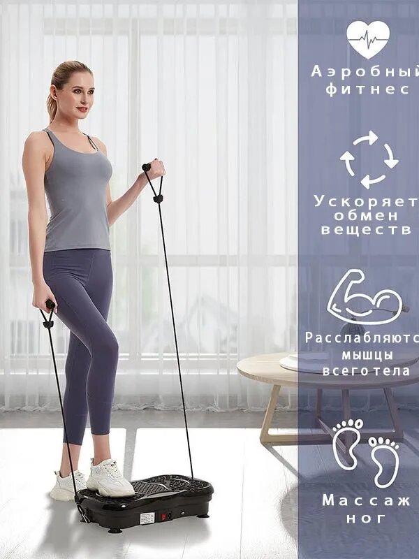 Виброплатформа кардио тренажер для дома, электрический вибротренажер антицеллюлитный для тела, нагрузка 150 кг интересное:
