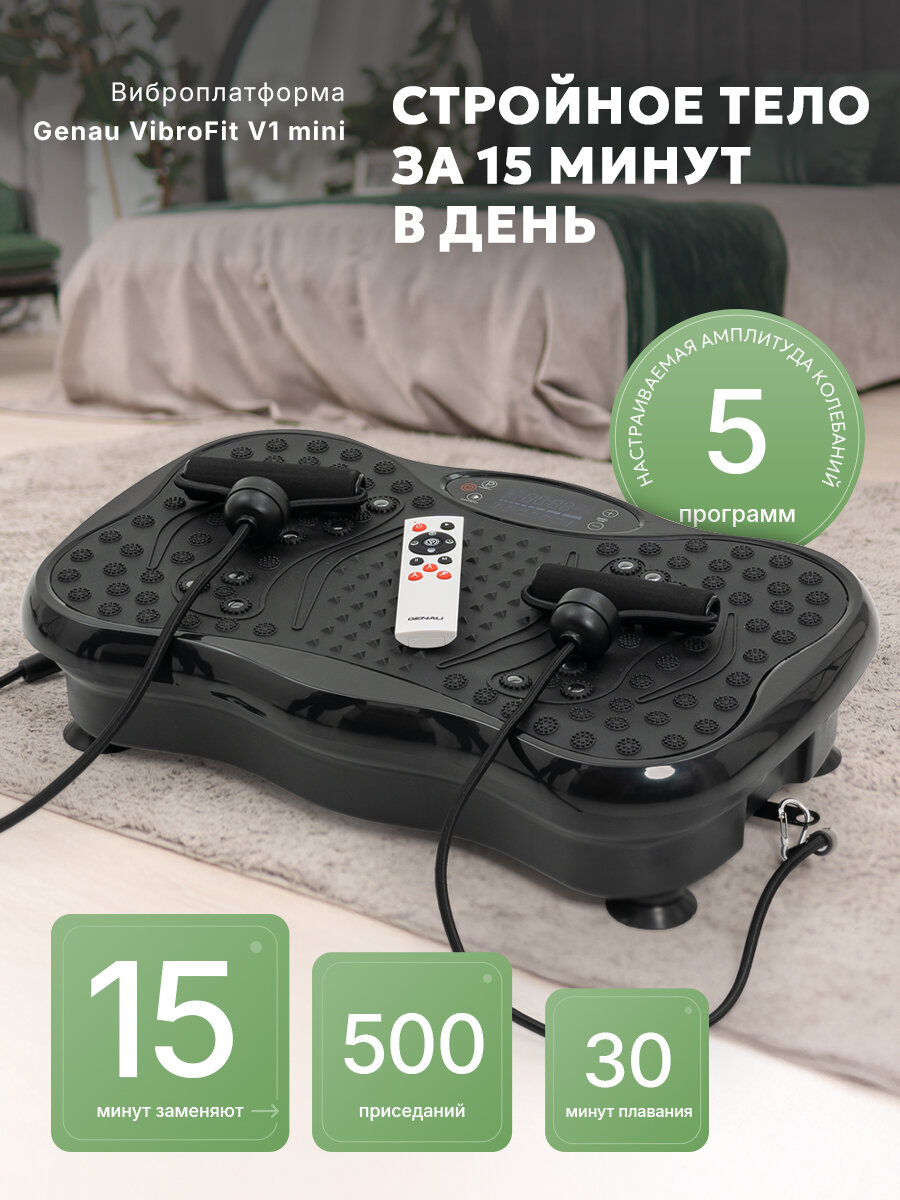Фитнес виброплатформа Genau VibroFit V1 mini с эспандерами для рук интересное: