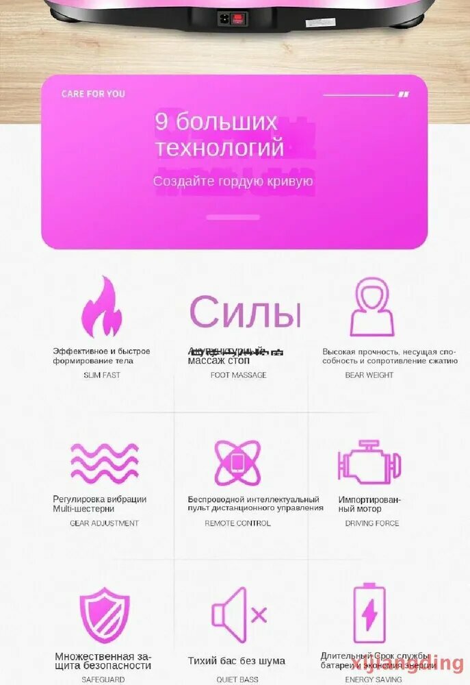 Виброплатформа, сжигание жира в 30000раз, розовый цвет, максимальный вес пользователя 150кг интересное: