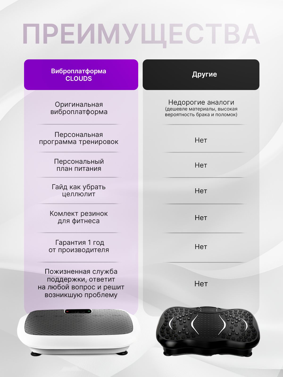 Ниже Вы можете прочитать отзывы на Виброплатформа для похудения CLOUDS, ознакомится с подробными характеристиками, посмотреть интересные обзоры и фотографии на Виброплатформа для похудения CLOUDS.