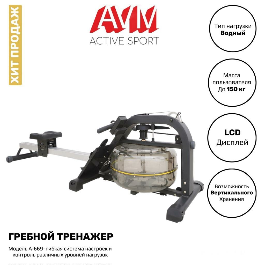 Купить Гребной тренажер АVM A-669 / Водный / Для дома и зала / До 150 кг / Черный с серебристым / С улучшенным дисплеем