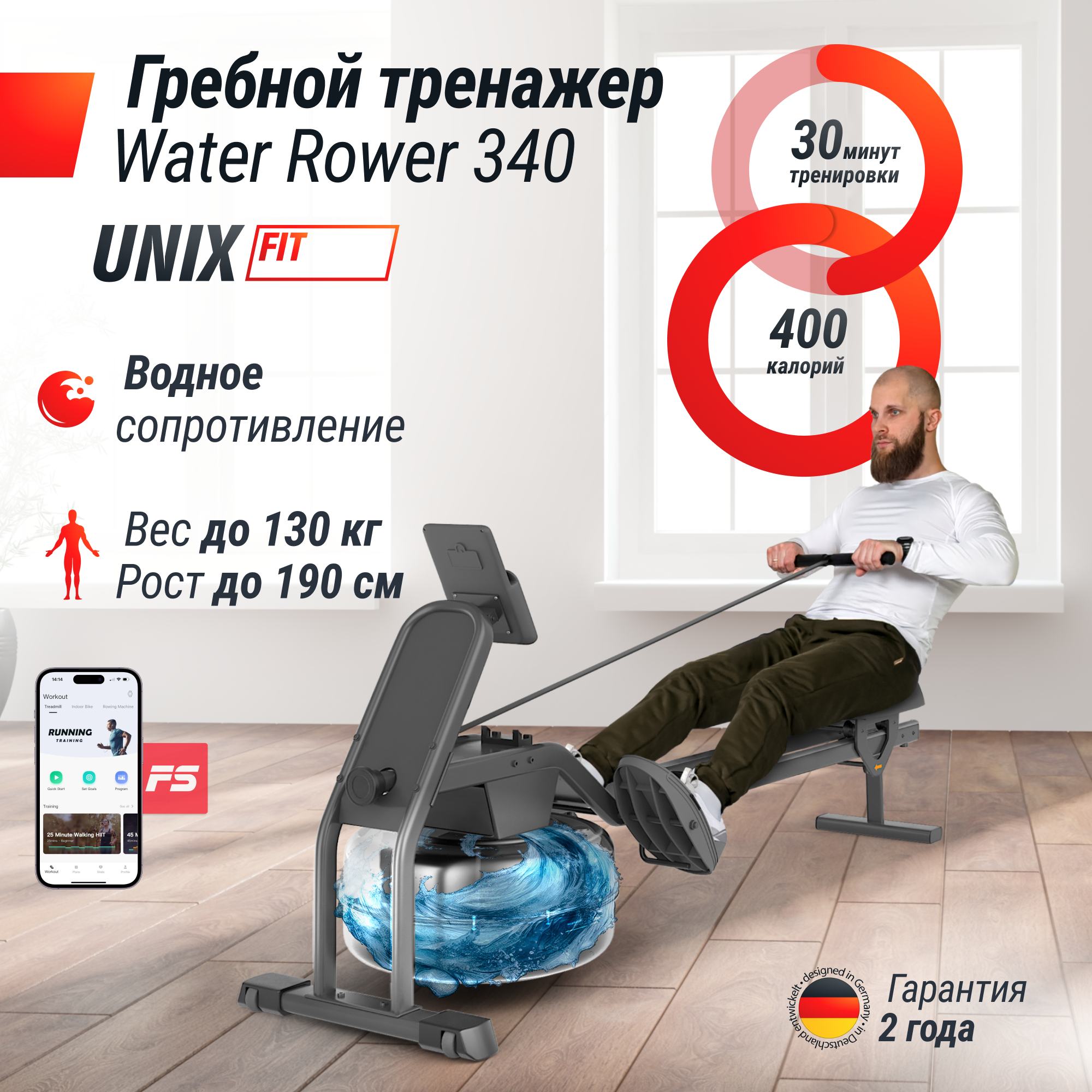 Купить Гребной тренажер UNIX Fit Water Rower 340 + аксессуары для фитнеса