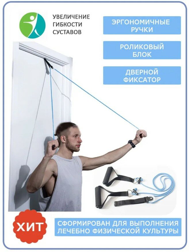 Тренажер для ЛФК с помощью дверного фиксатора, крепиться в дверном проеме интересное: