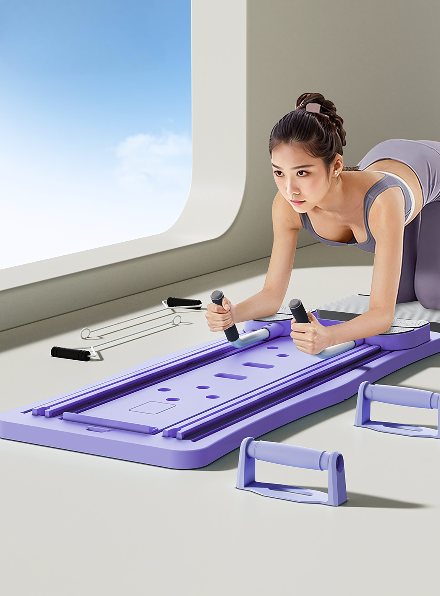Купить Многофункциональная доска для фитнеса 4 в 1 с таймером, складная конструкция, цвет фиолетовый