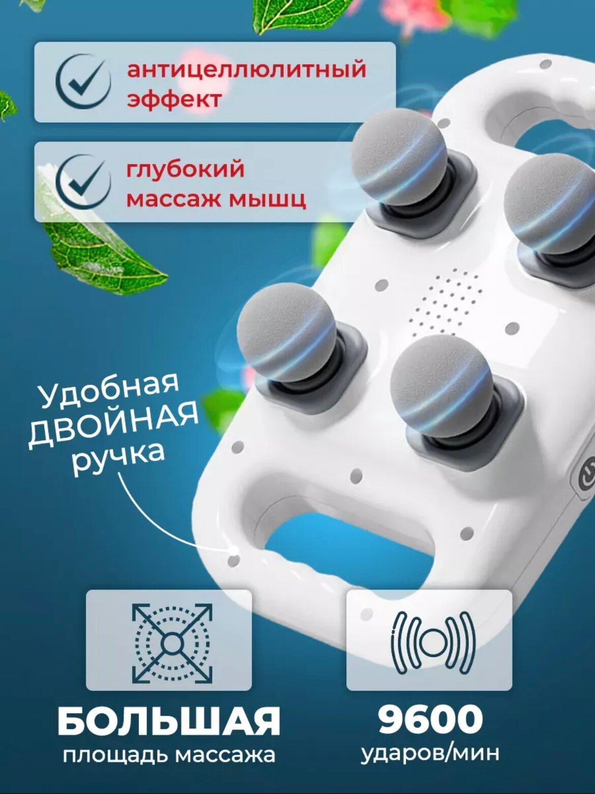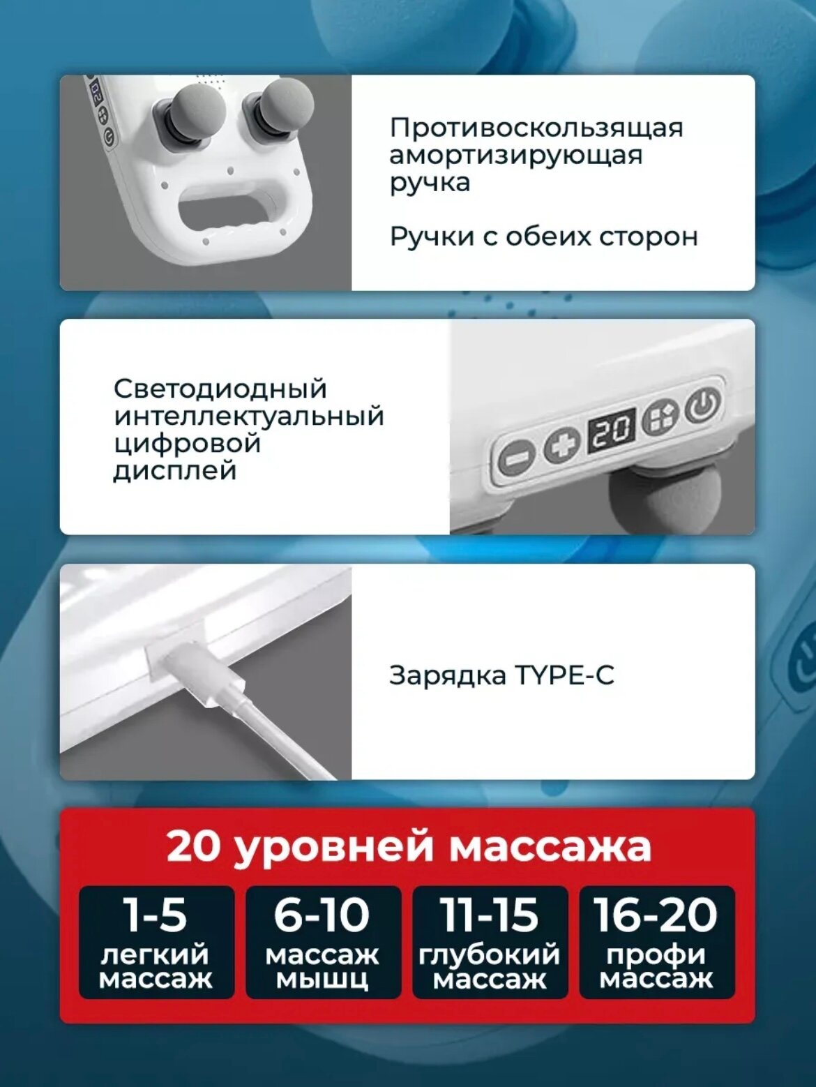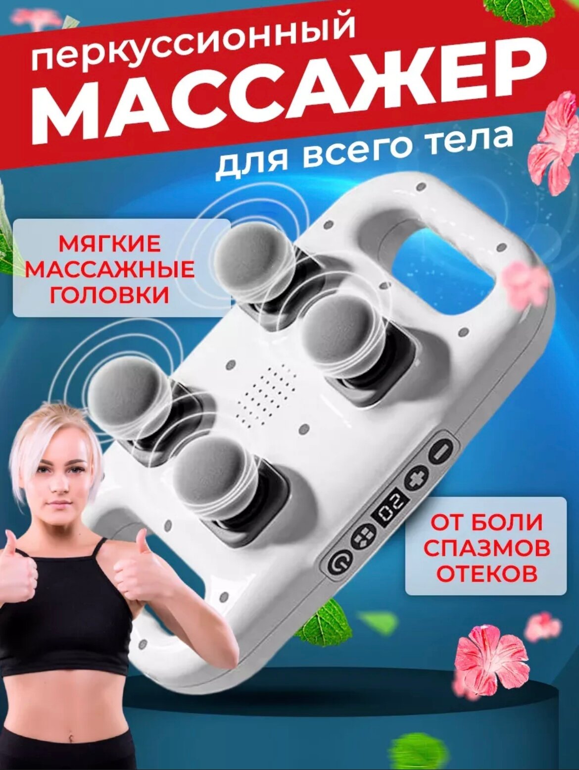 Массажер электрический, 4 насадки, перкуссионный, 20 режимов, белый интересное: