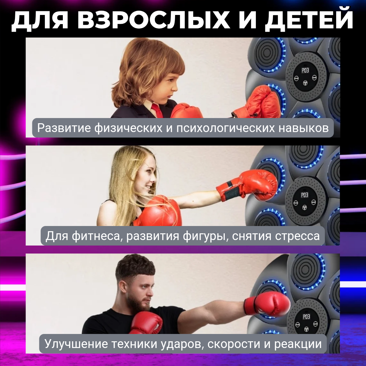 Тренажер интерактивный - музыкальный для бокса интересное: