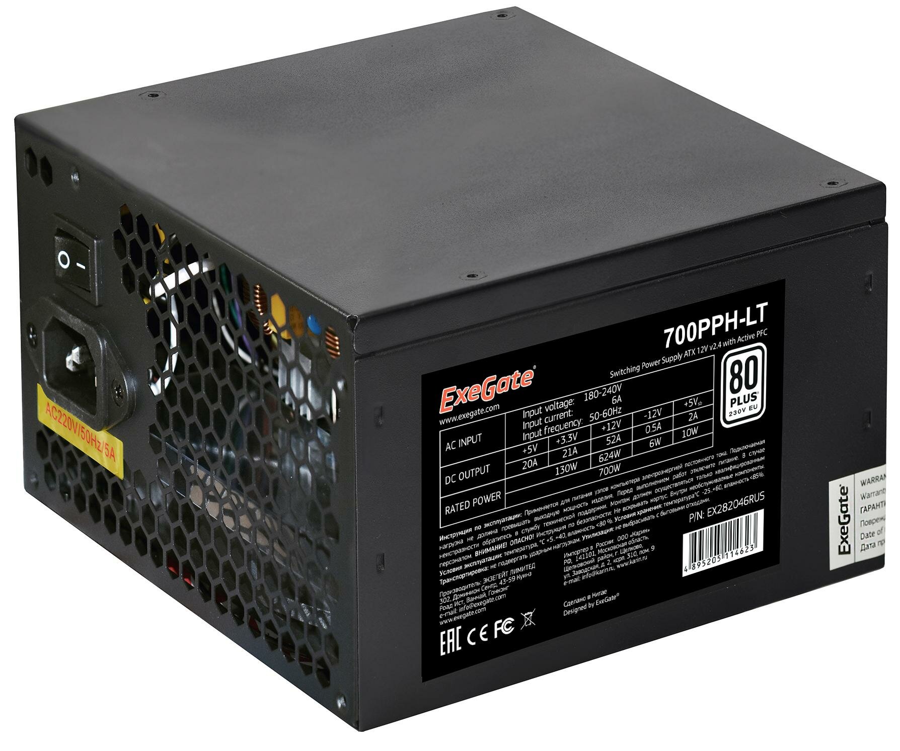 Блок питания ExeGate 700W 80+ 700PPH-LT ATX, 12cm fan, black (EX282048RUS)