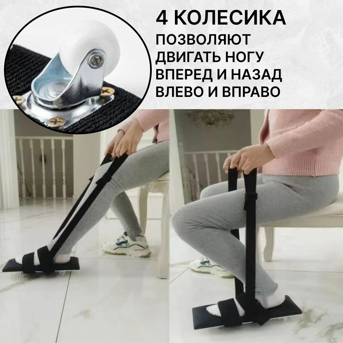 Тренажер для разработки коленного сустава, подвижная напольная тележка на колесиках с ремнями для фиксации стопы интересное: