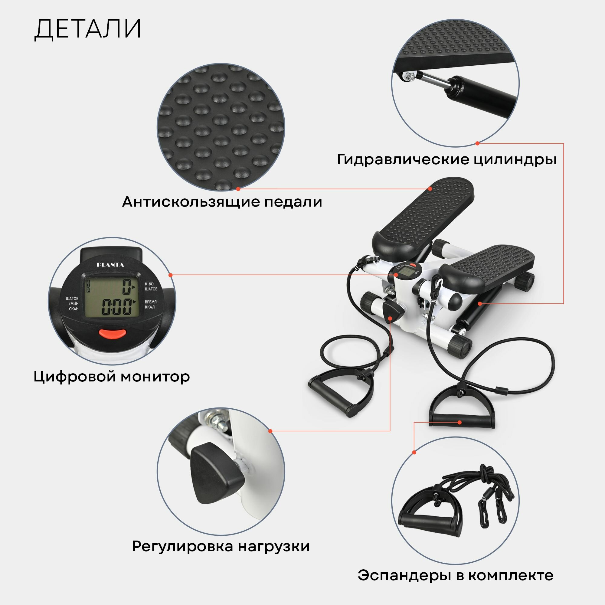 PLANTA Мини - степпер поворотный с эспандерами FD-STEP-002, домашний кардиотренажёр для похудения