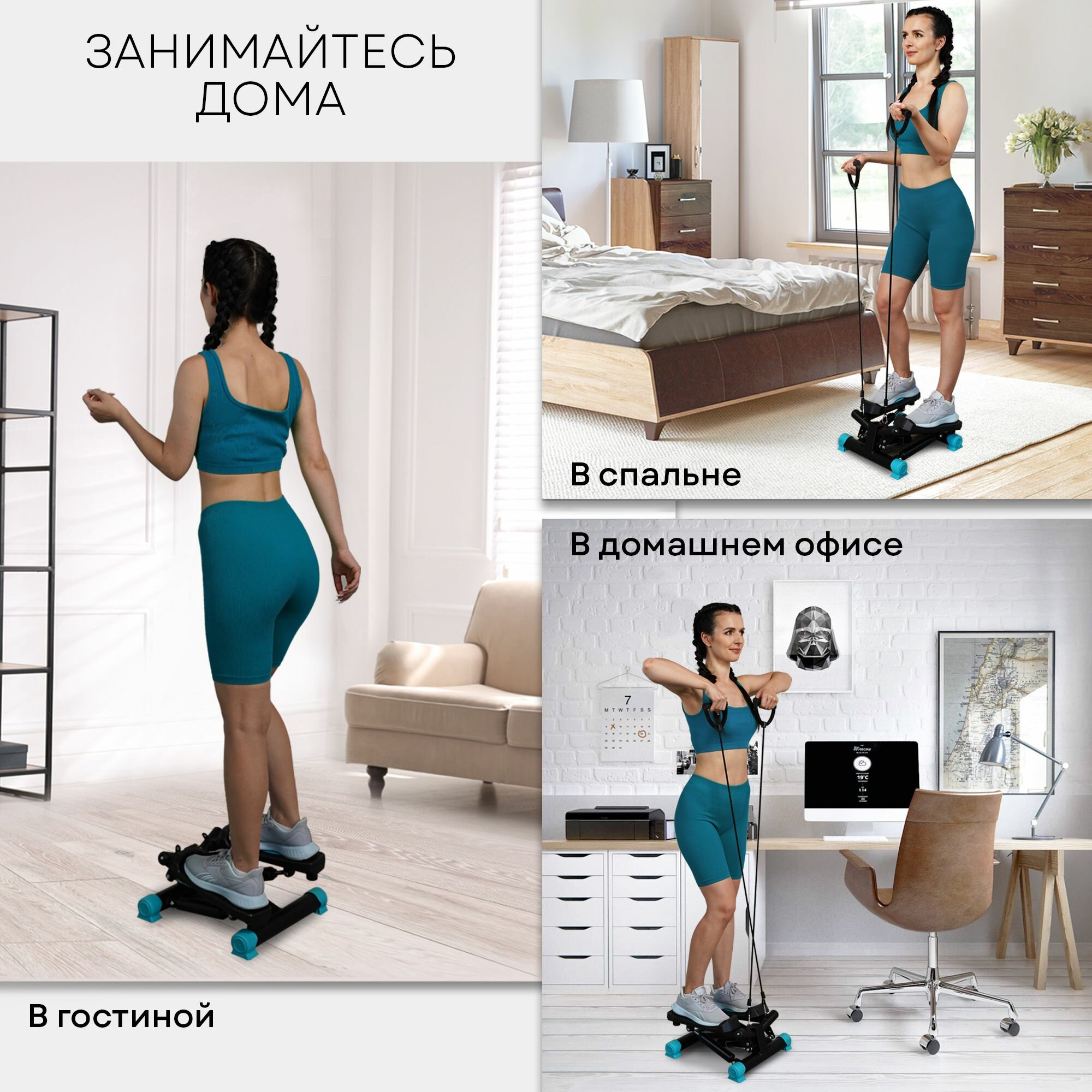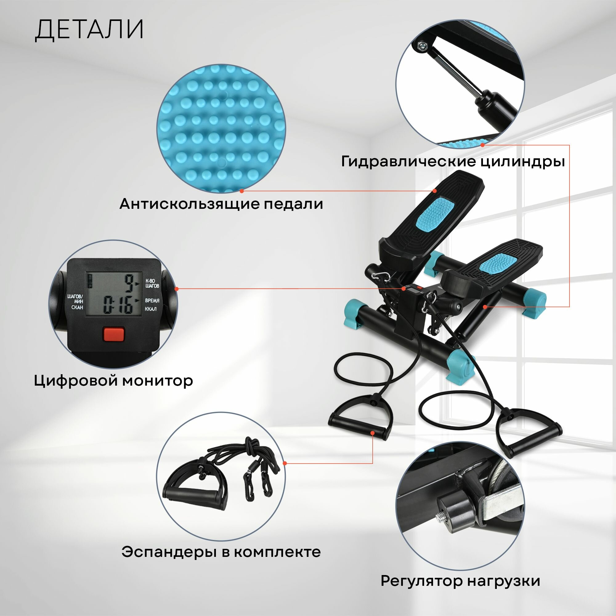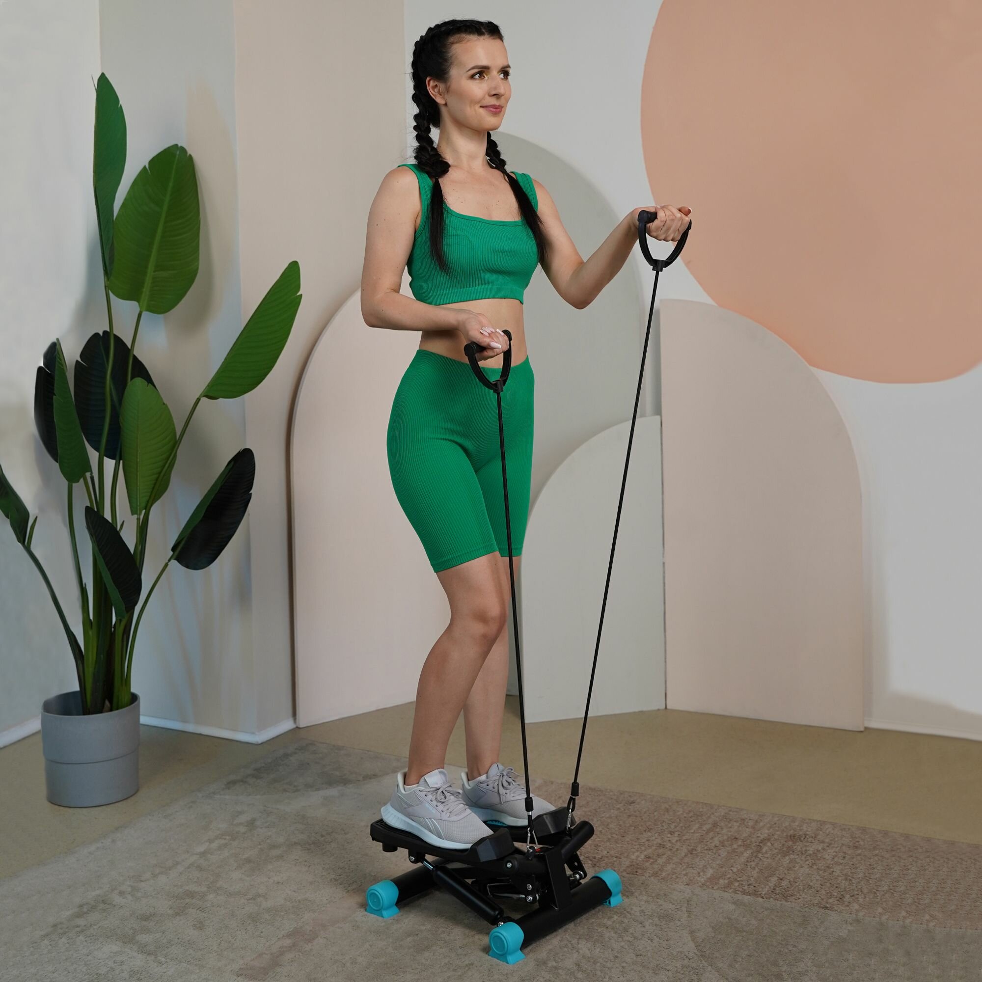 PLANTA Мини - степпер поворотный с эспандерами FD-STEP-002, домашний кардиотренажёр для похудения интересное: