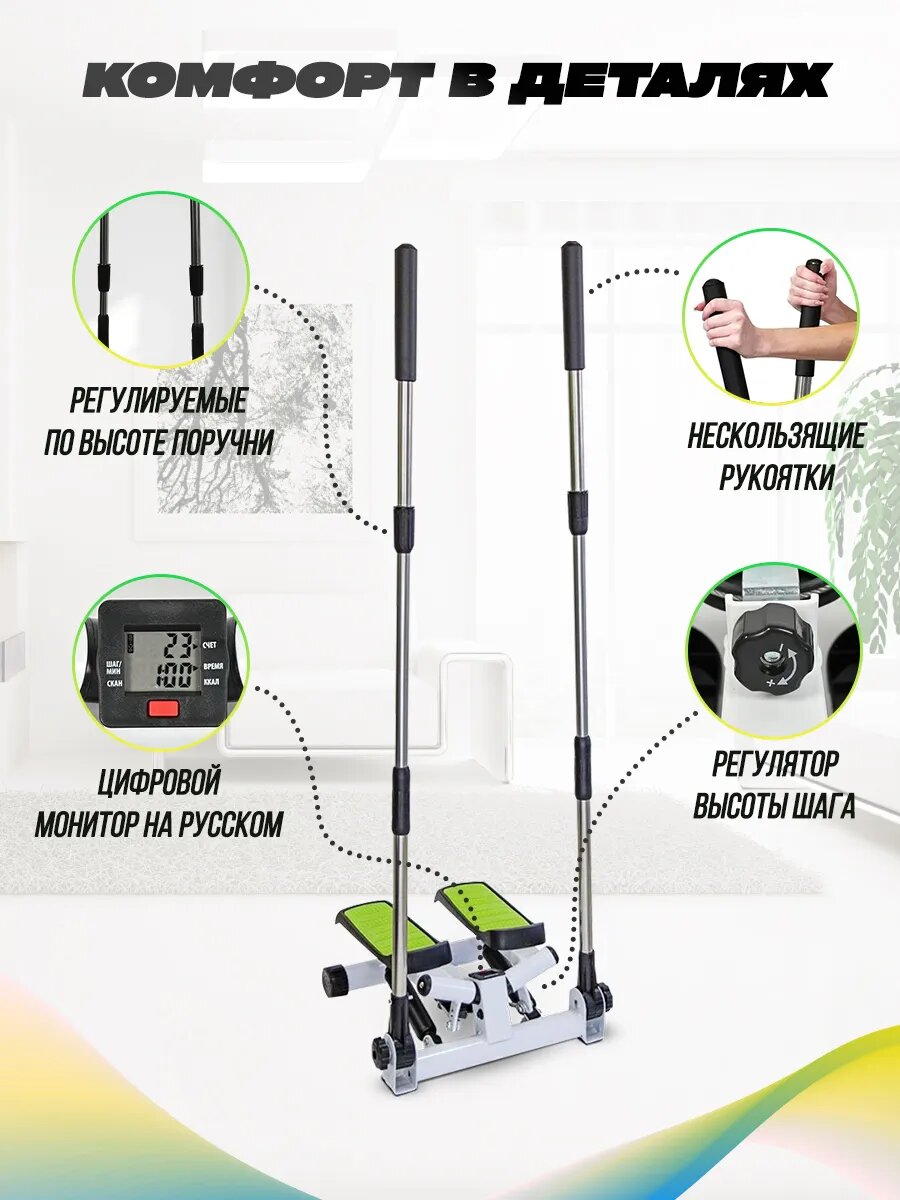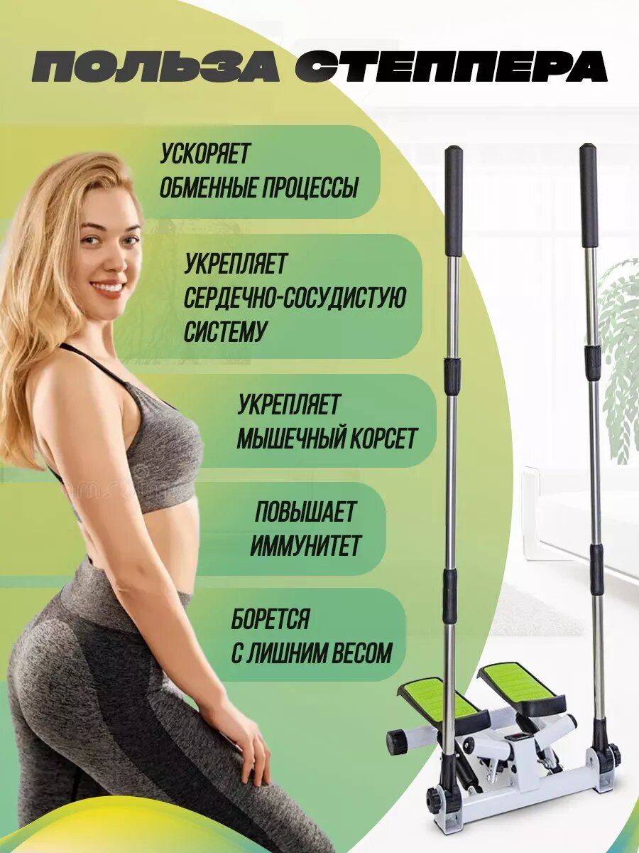 Степпер тренажер для дома, мини степпер поворотный с поручнями с регулировкой нагрузки, 130 кг интересное: