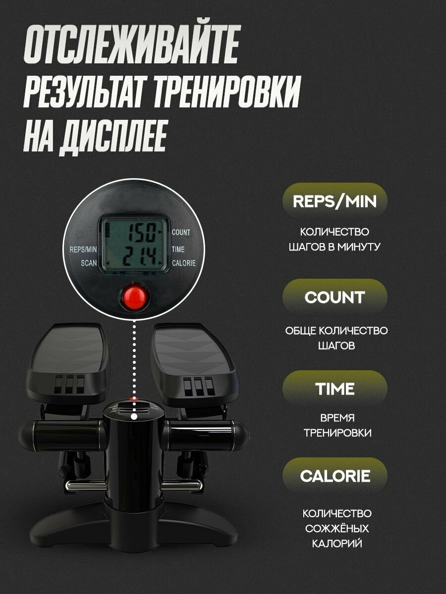 Мини степпер тренажер для дома с эспандерами, цвет черный, нагрузка до 120 кг интересное: