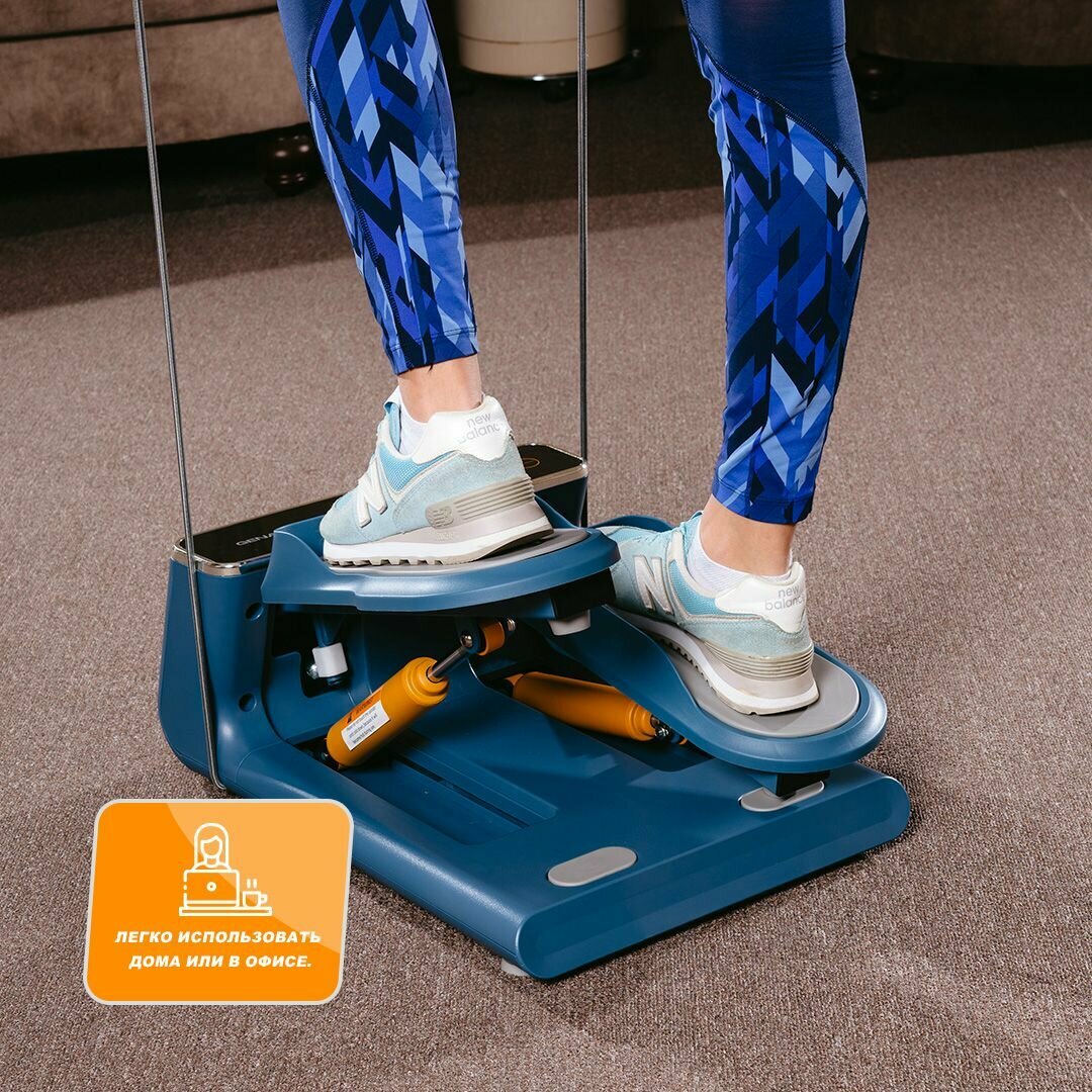 Мини-степпер электрический тренажер для дома S1 Deluxe Navy Blue с эспандерами для рук интересное: