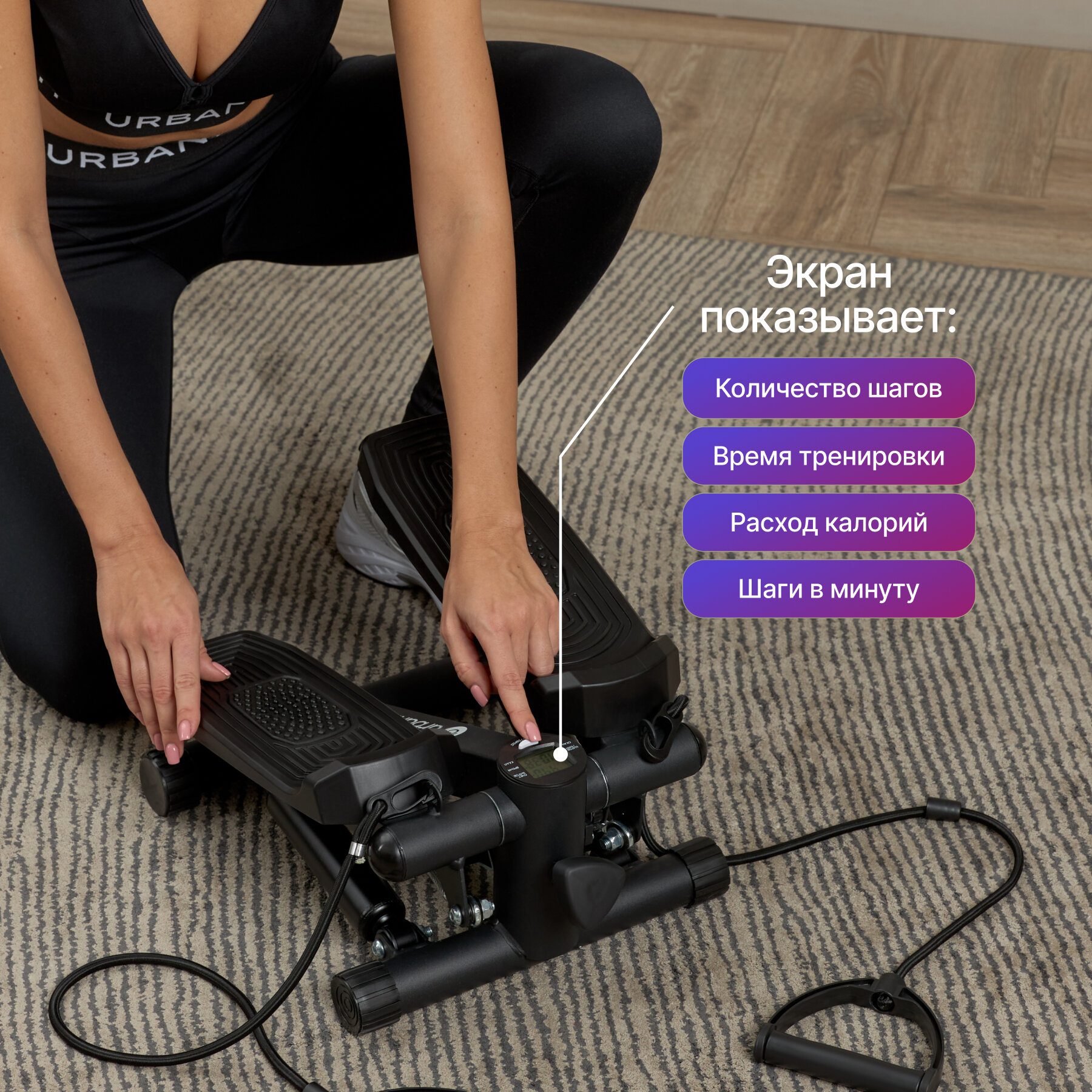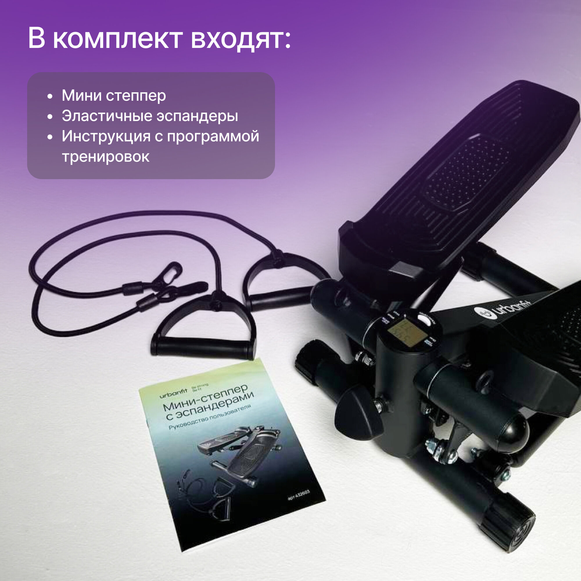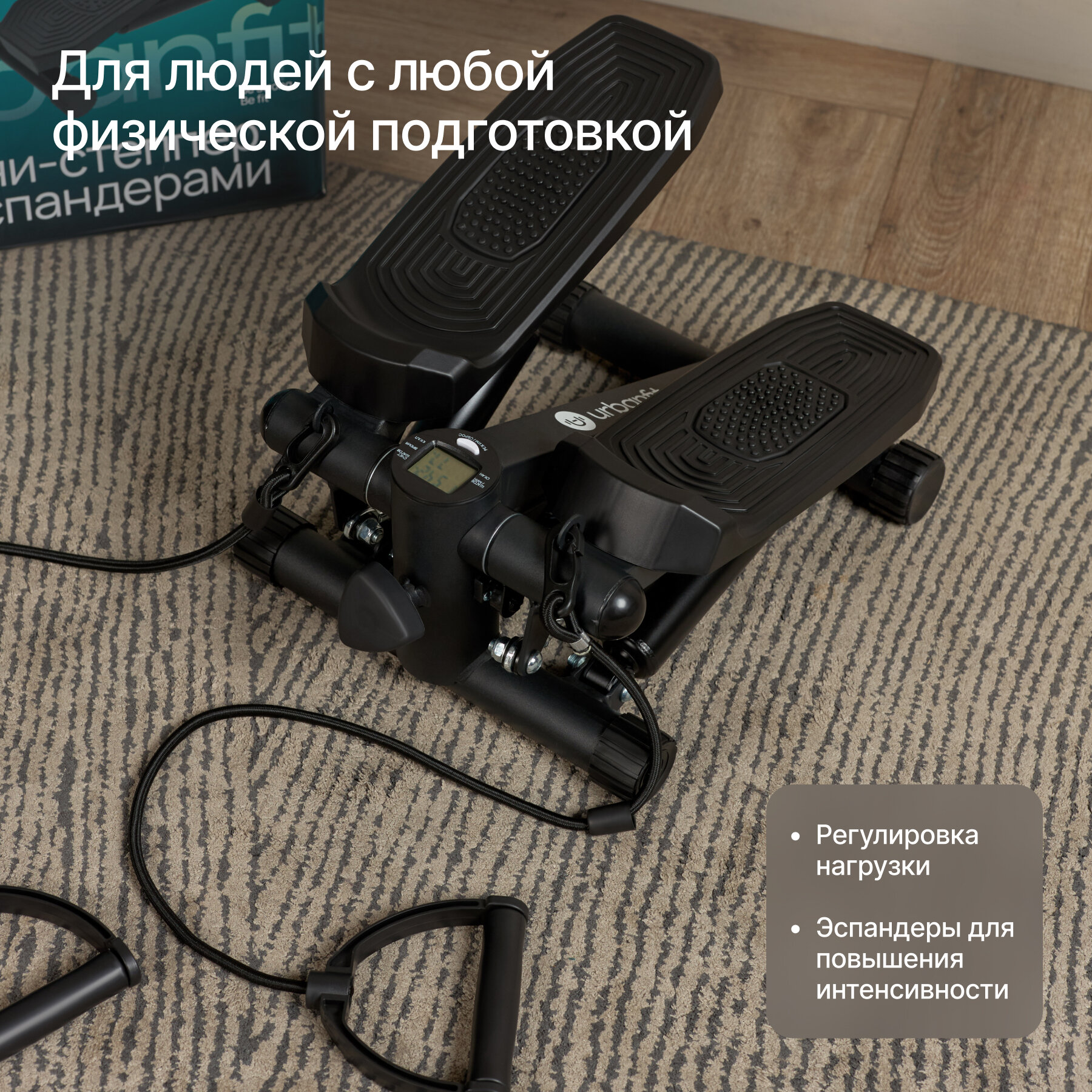 Степпер с эспандерами Urbanfit, матовый черный интересное: