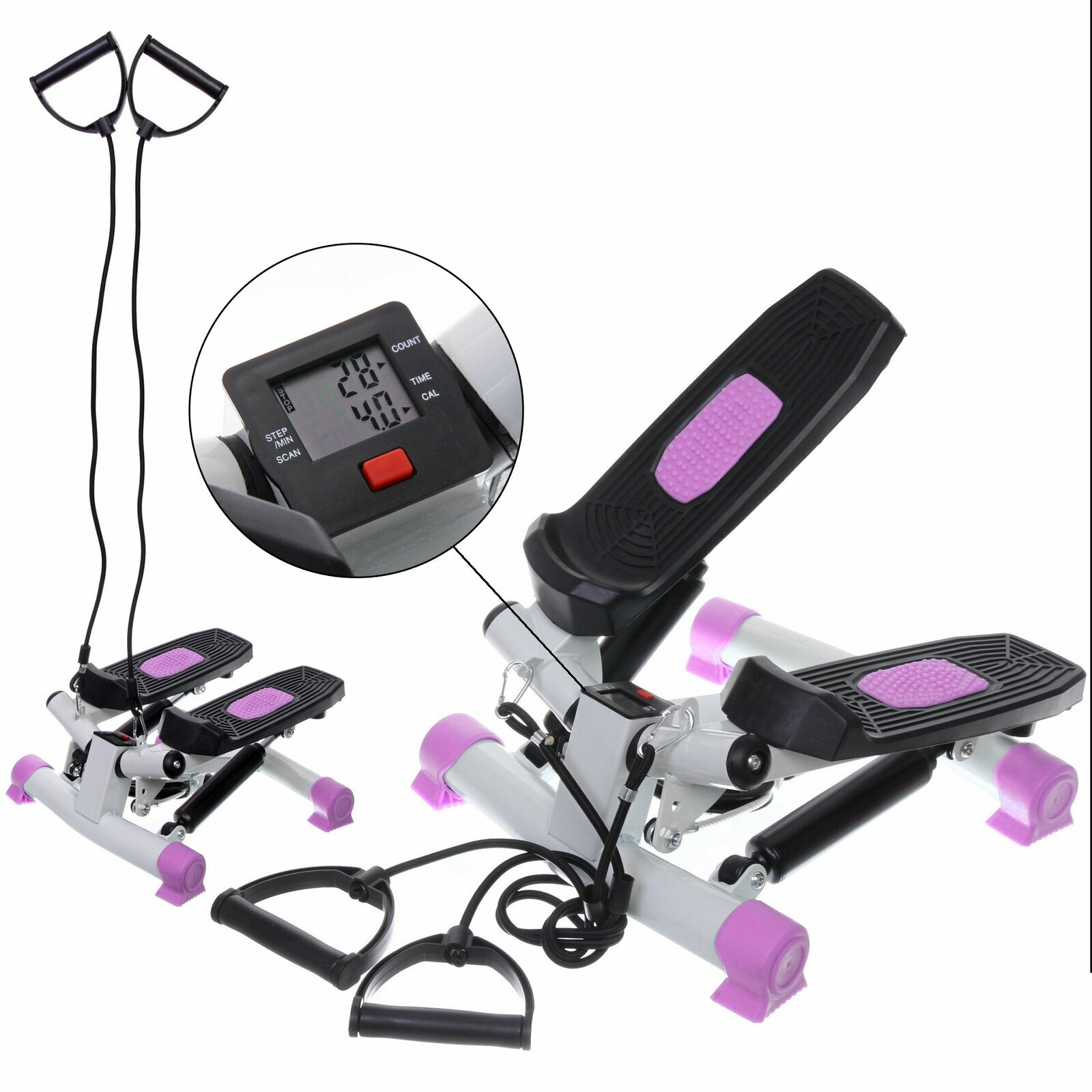 Купить Мини-степпер с эспандерами кардиотренажер для дома, розовый