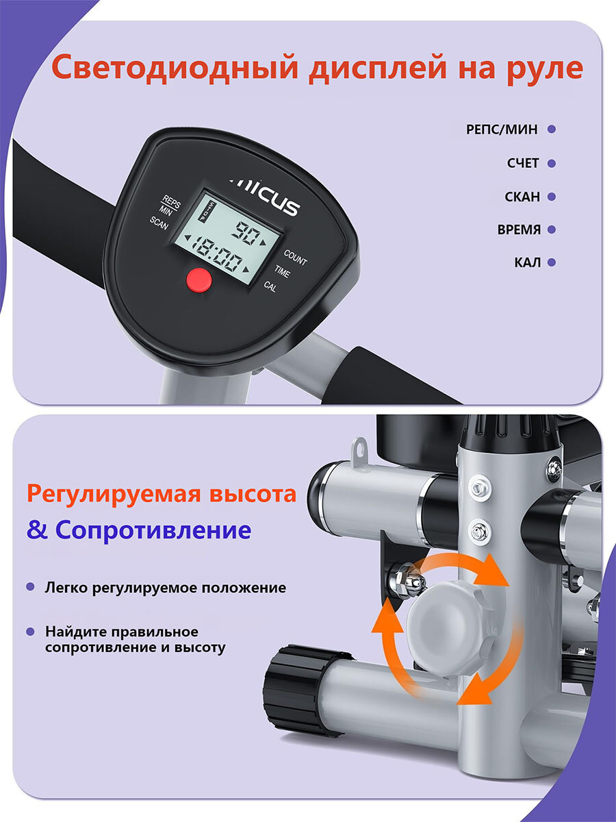 Степпер тренажер для дома, Регулируется по высоте, с помощью эластичной ленты, грузоподъемность 150 кг интересное:
