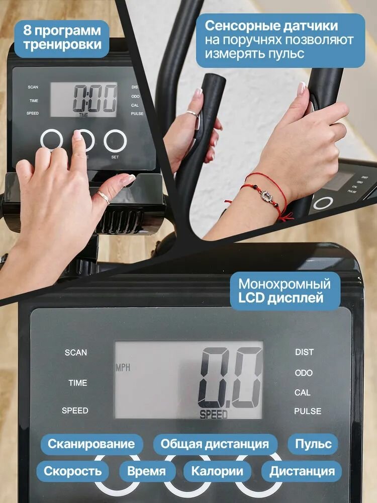 Эллиптический тренажер HyperFit Reisender U13W/3 в 1/Велотренажер/Степпет/Для дома/Для тренировок/Маховик 7 кг/магнитный