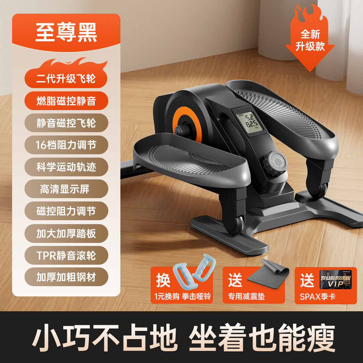 Купить Мини Эллиптический Тренажер для Дома, Бесшумный, Улучшенная Конфигурация, Премиальный Черный C3