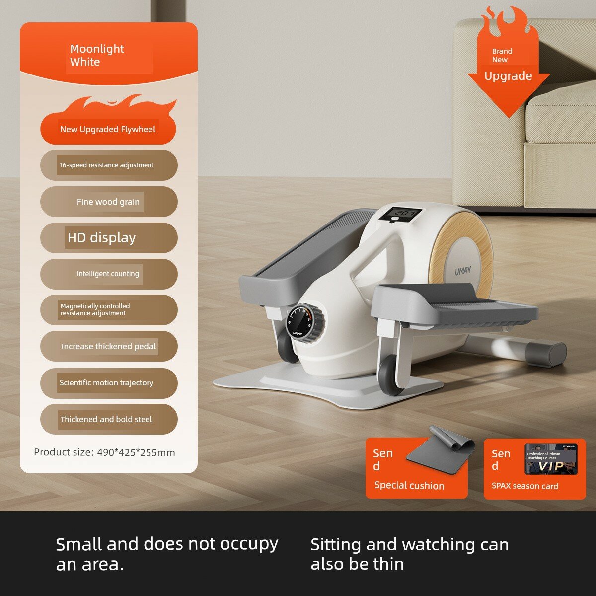Мини Эллиптический Тренажер C3L - Лунный Белый, Дерево + Эспандер, Улучшенный Маховик, 16 уровней нагрузки