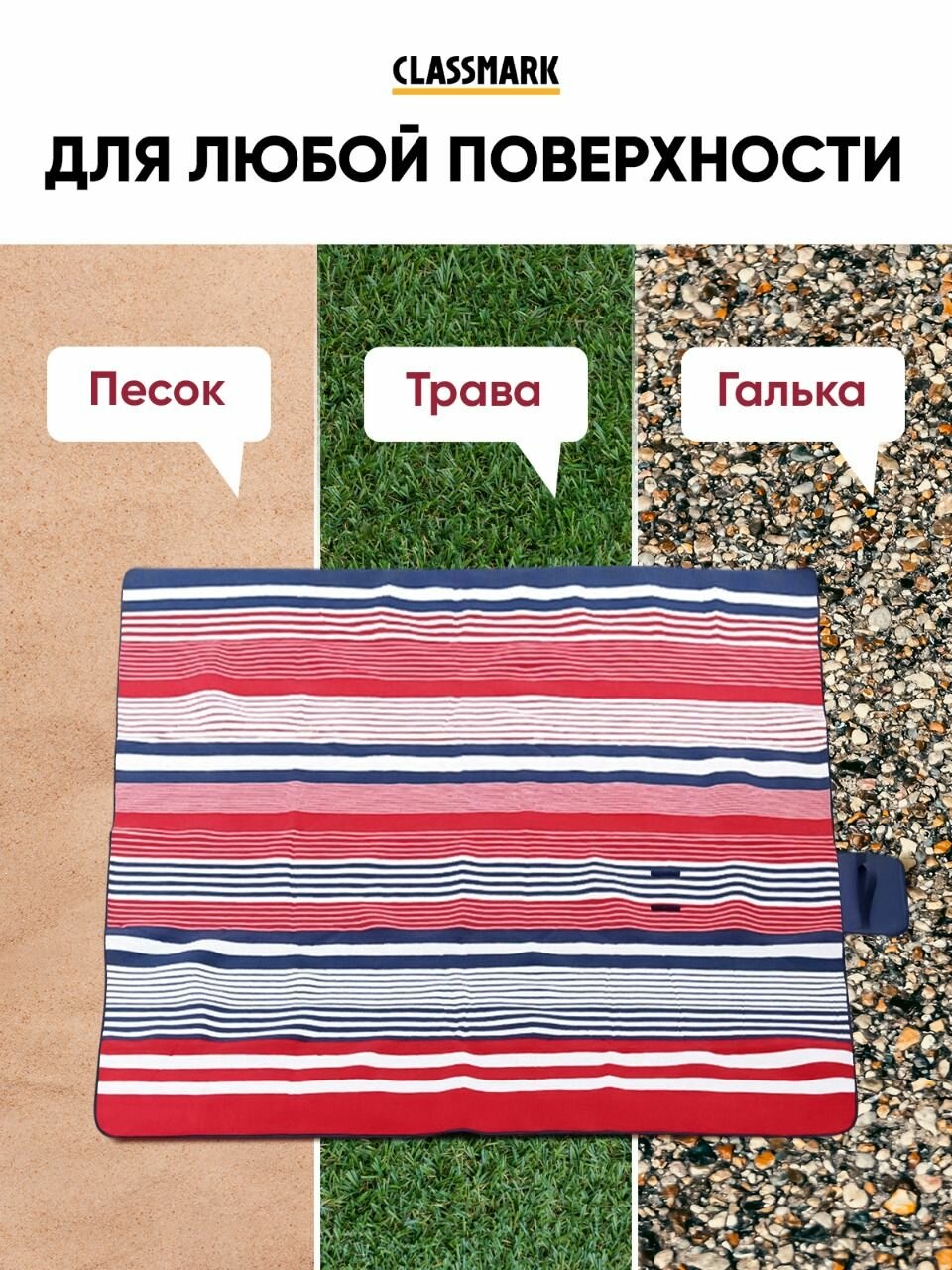 Купить Пляжный коврик Classmark 200х200 см, складной, для пикника и отдыха на природе, для песка и гальки