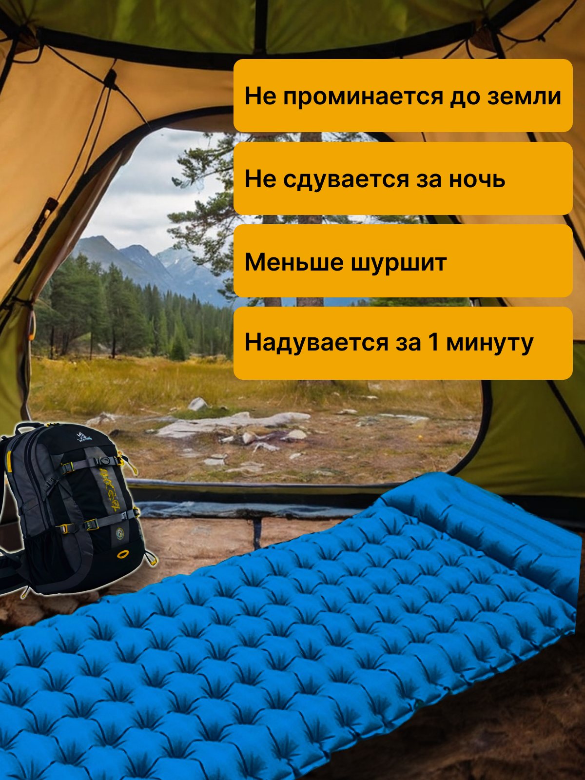 Коврик туристический Матрас самонадувающийся в палатку тактический складной DG travel, всесезонный интересное: