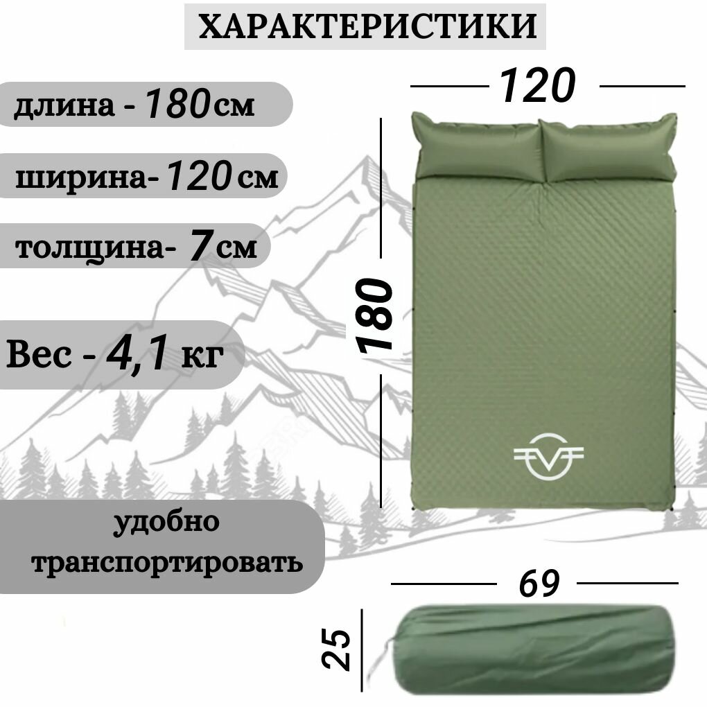 Коврик туристический, толщина 7см, двухспальный, самонадувающийся.