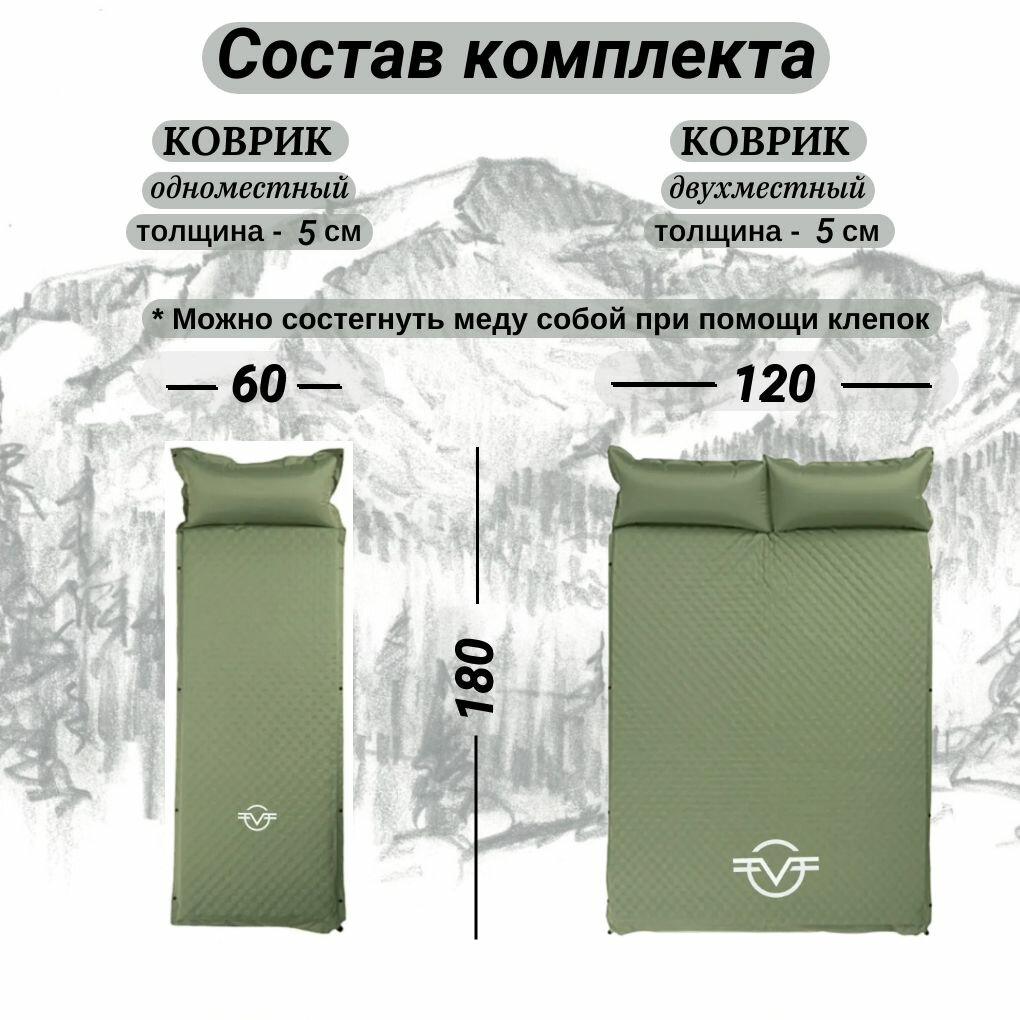 Комплект ковриков из 2шт (двухместный + одноместный), толщина 5см, самонадувающиеся. С общим спальным местом 180х180см