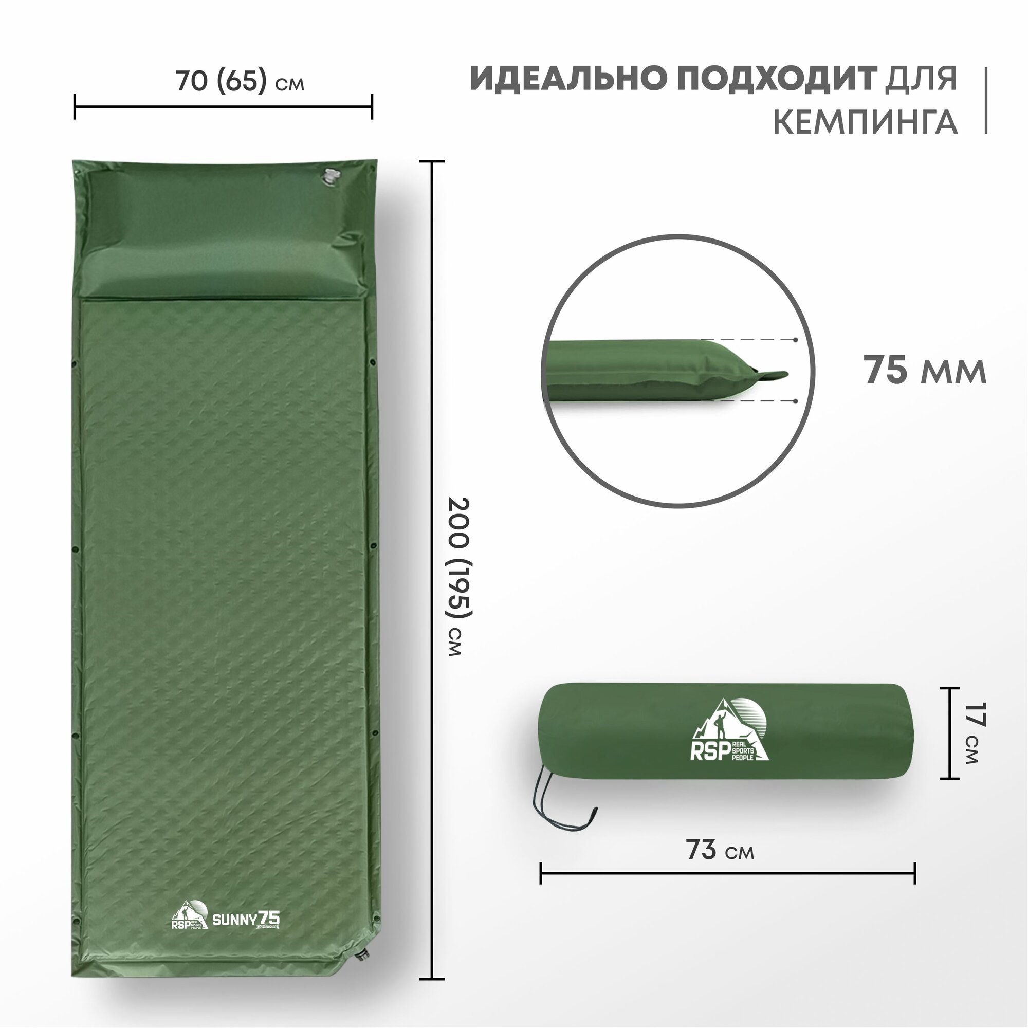 Самонадувающийся коврик с подушкой RSP SUNNY 75 интересное: