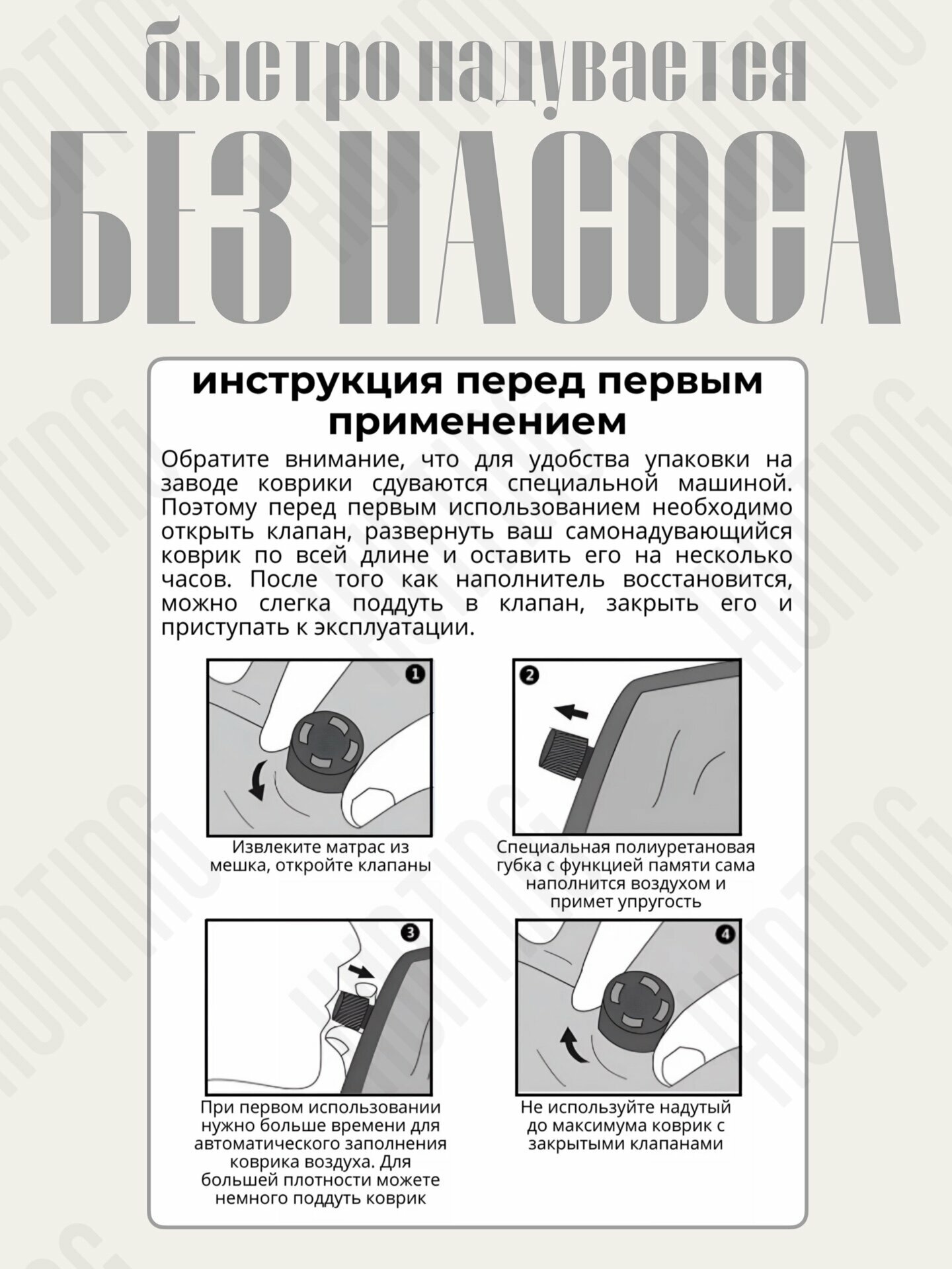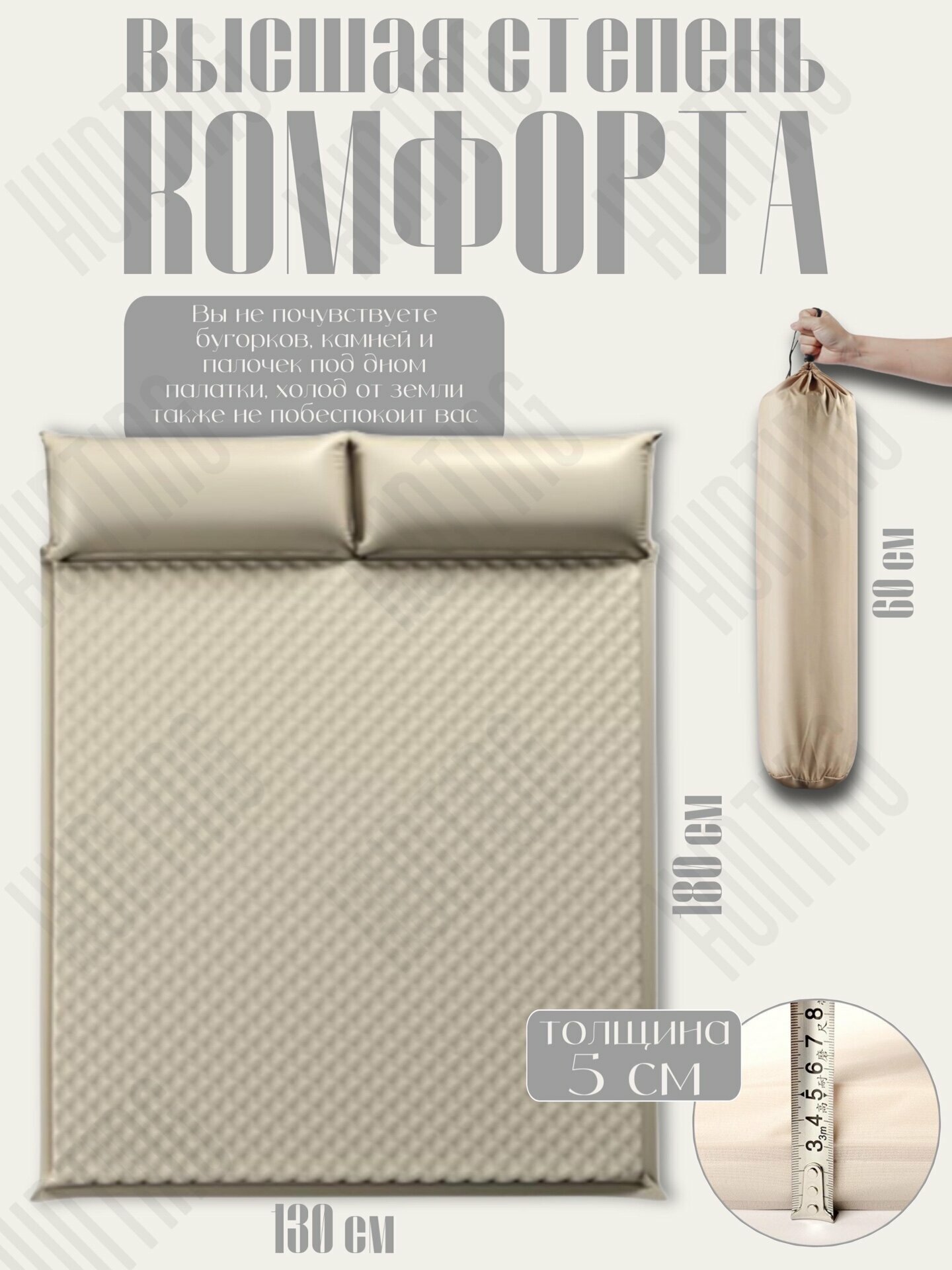 Самонадувающийся туристический коврик, двухместный, бежевый 5 см интересное: