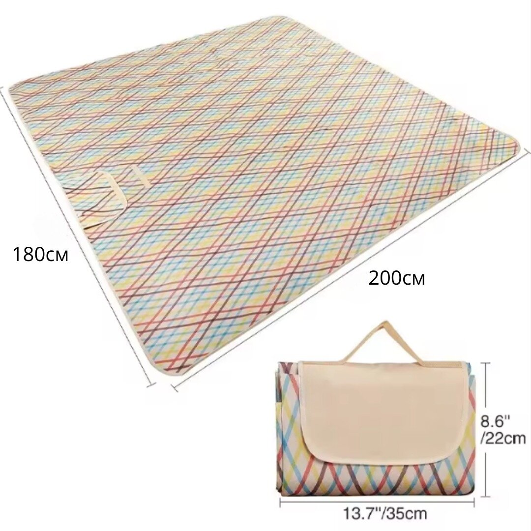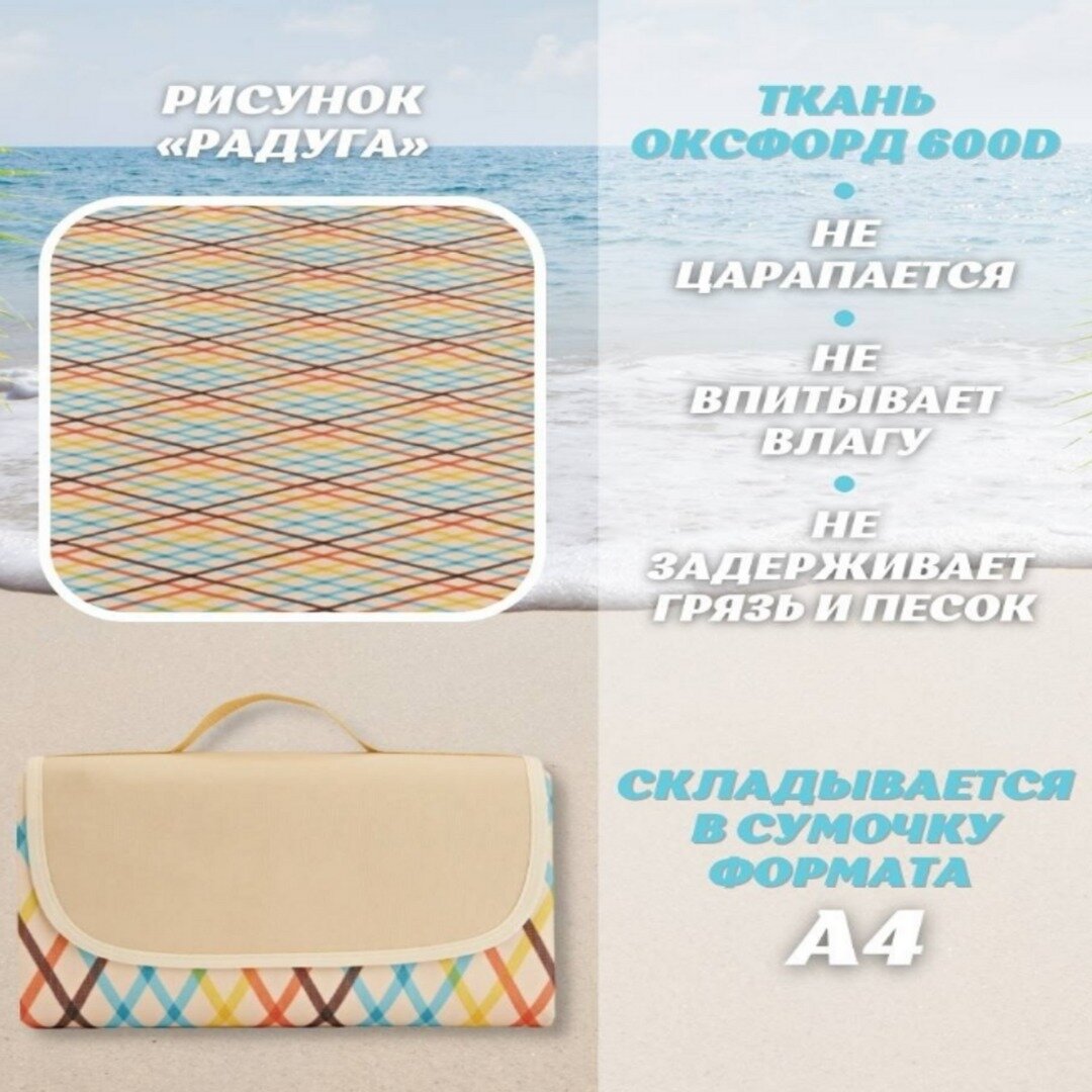 Коврик пляжный складной / Коврик-сумка для отдыха / Туристическое одеяло для пикника / Непромокаемый кемпинговый плед / 200х180 см / радуга интересное: