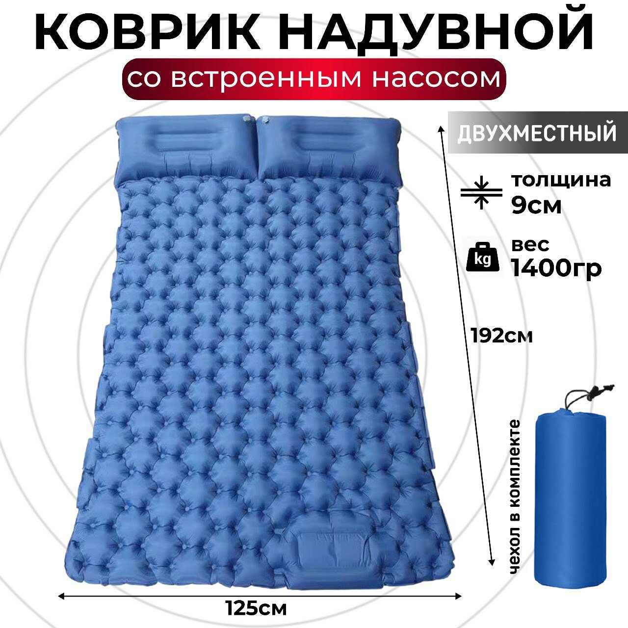 Туристический надувной коврик с насосом, с подушкой 2-х местный кемпинговый коврик темно-синий интересное: