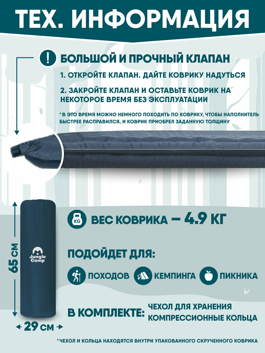 Коврик самонадувающийся кемпинговый JUNGLE CAMP Camper 80, толщина 8 см