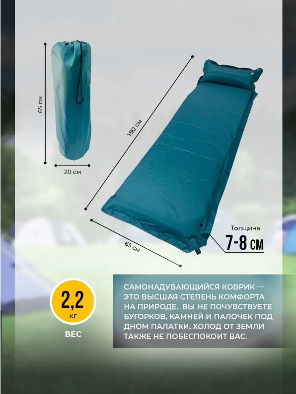Походный матрас / Туристический коврик самонадувающийся / 1 местный / нагрузка до 120 кг интересное: