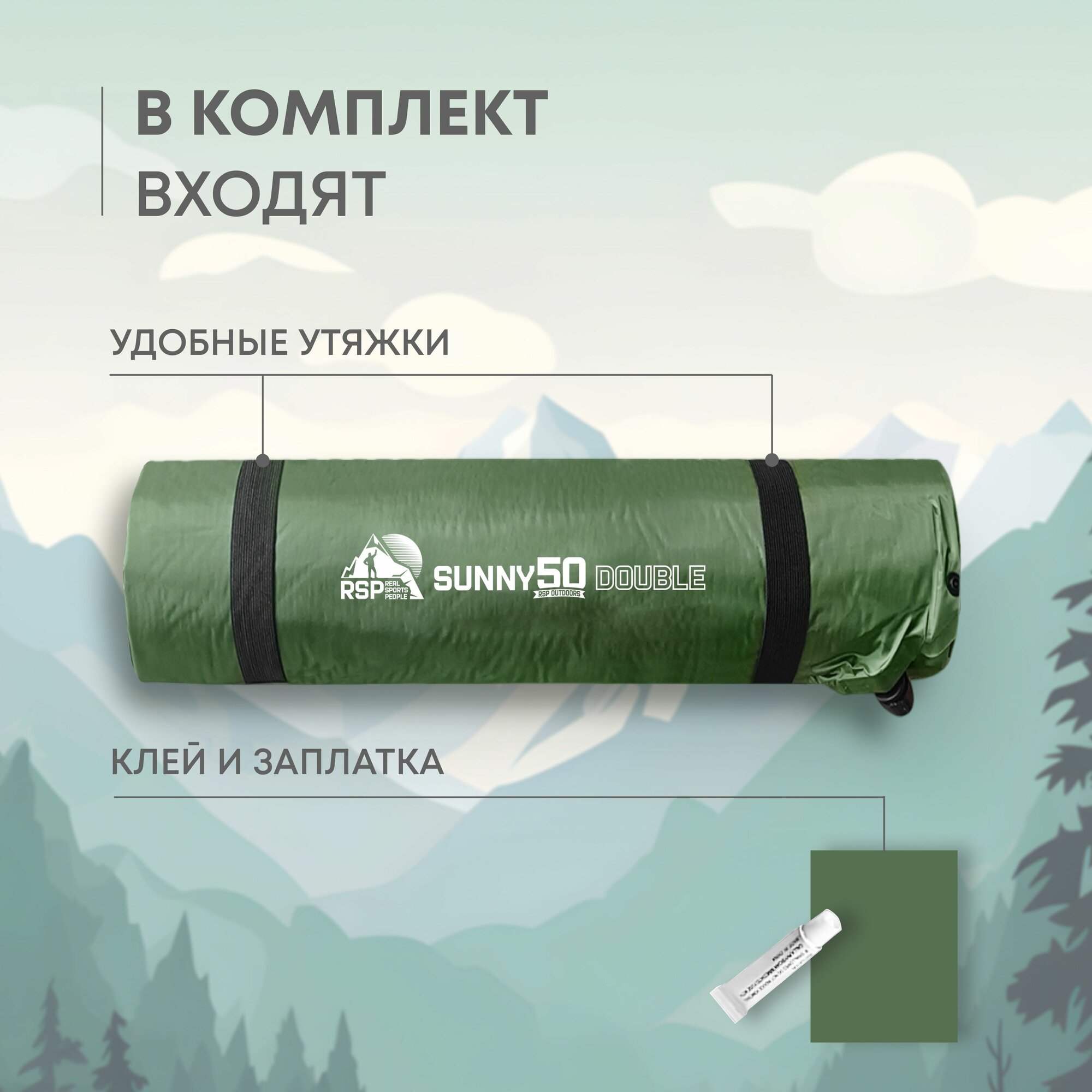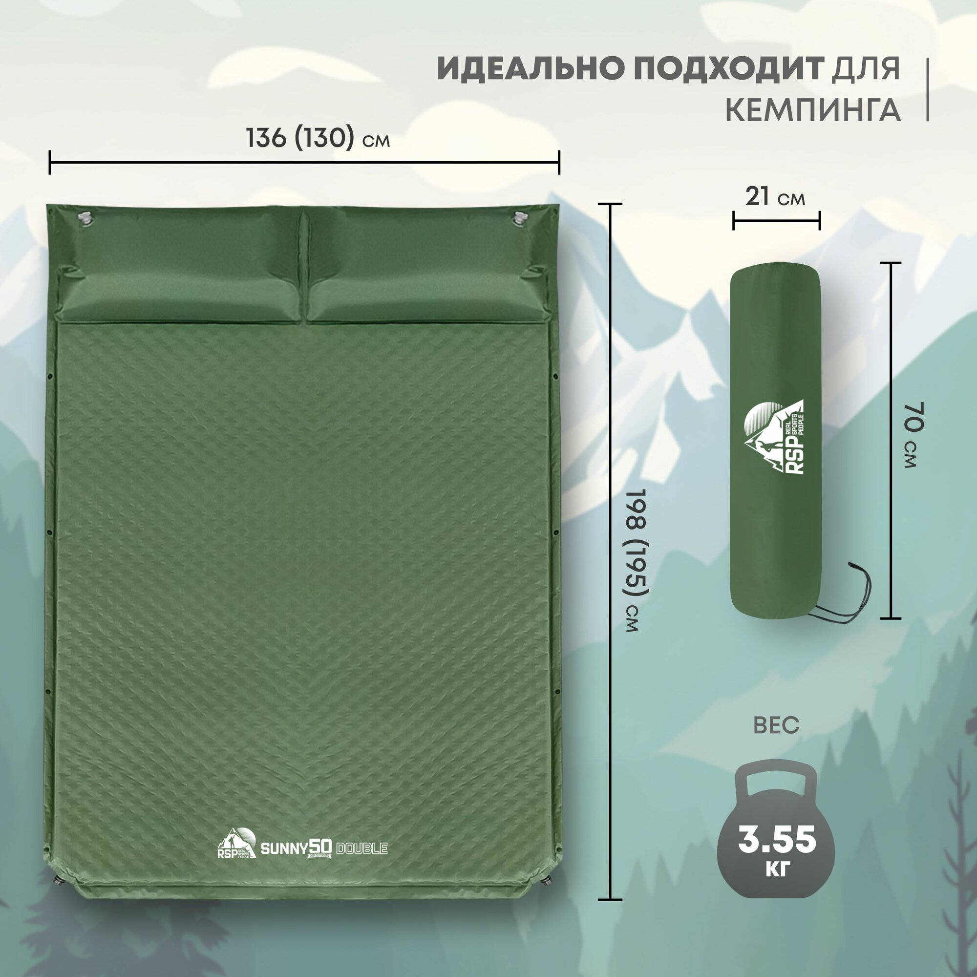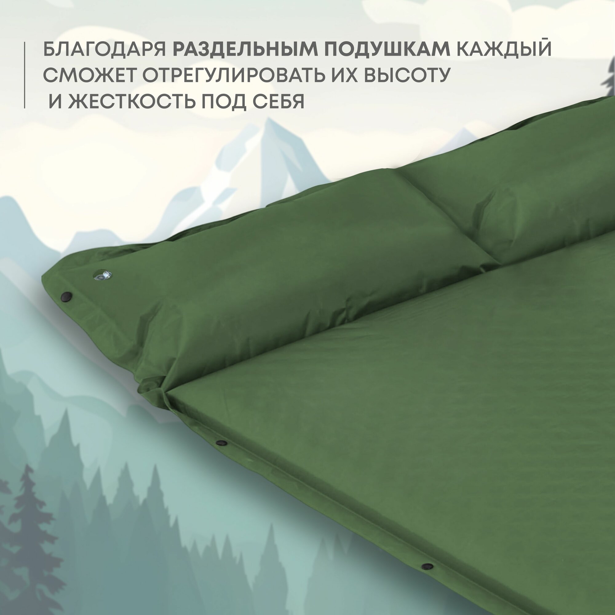 Самонадувной туристический матрас 192*132*5 см №29 цвет зеленый-серый интересное: