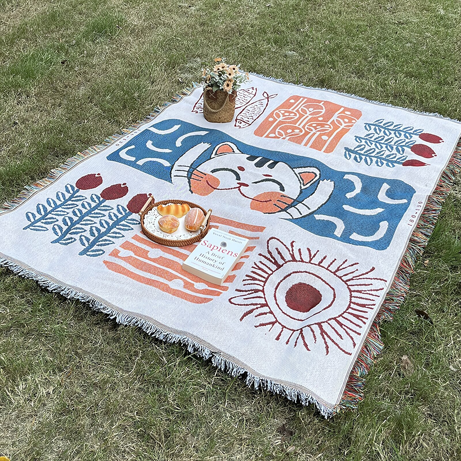 Коврик для пикника, пляжа, влагостойкий, в стиле бохо, 180×230 см, принт Lucky Cat