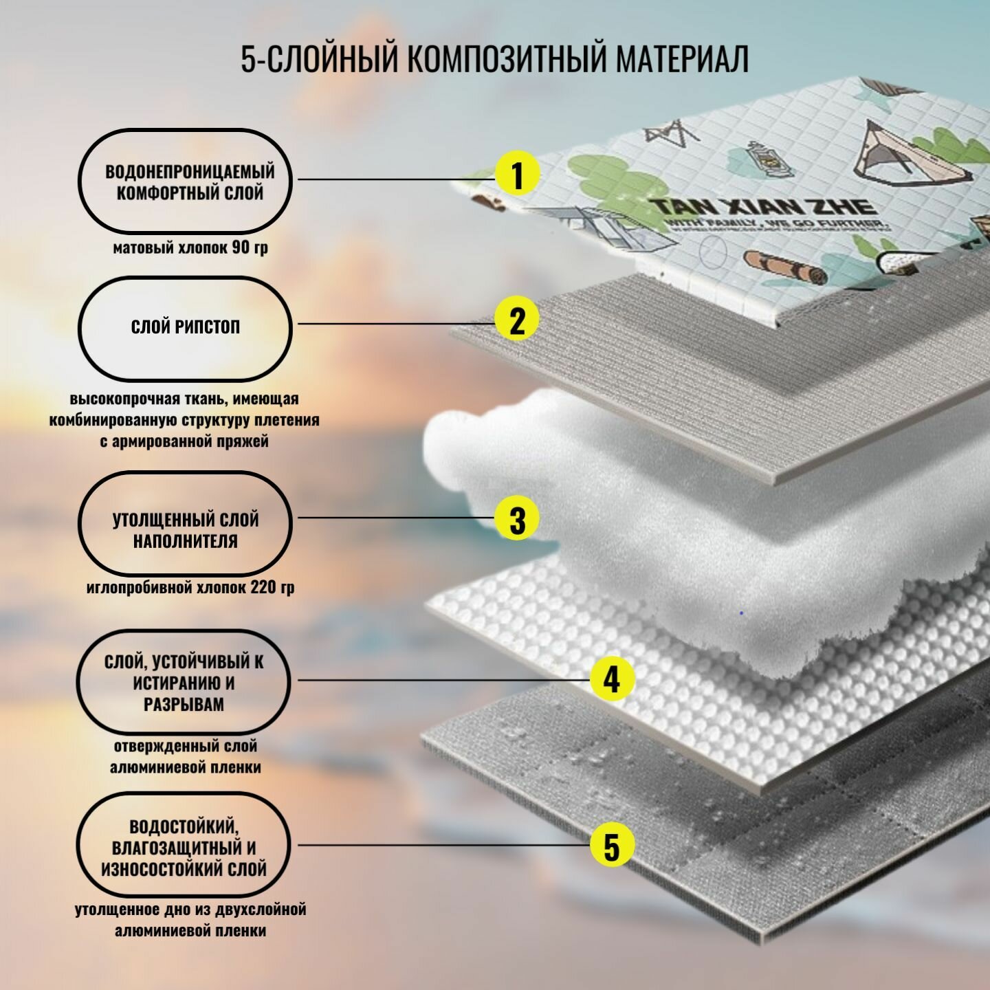 Купить TAN XIAN ZHE Пляжный коврик 200х200 см Плед для пикника непромокаемый Коврик туристический