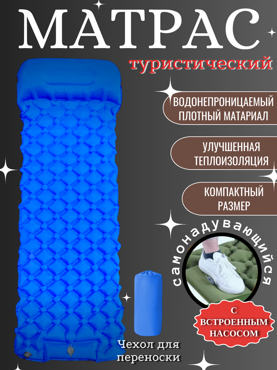 Туристический матрас, самонадувающийся, надувной коврик, походный, 190x60x5 см, голубой интересное: