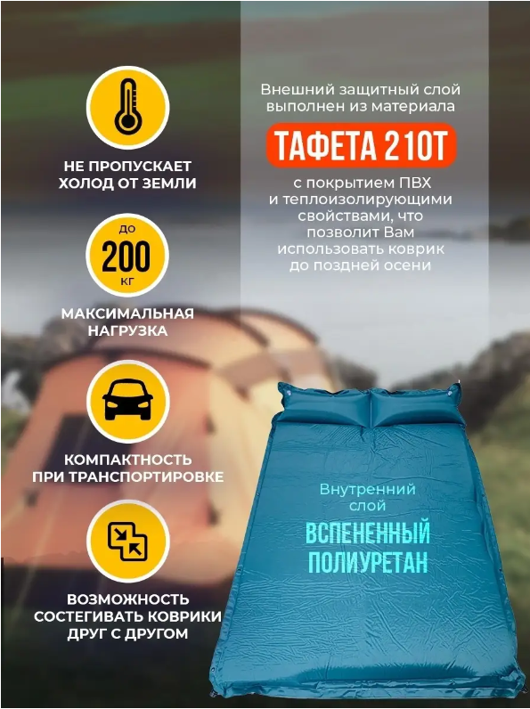 Походный матрас / Туристический коврик самонадувающийся / 2 местный / нагрузка до 200 кг интересное: