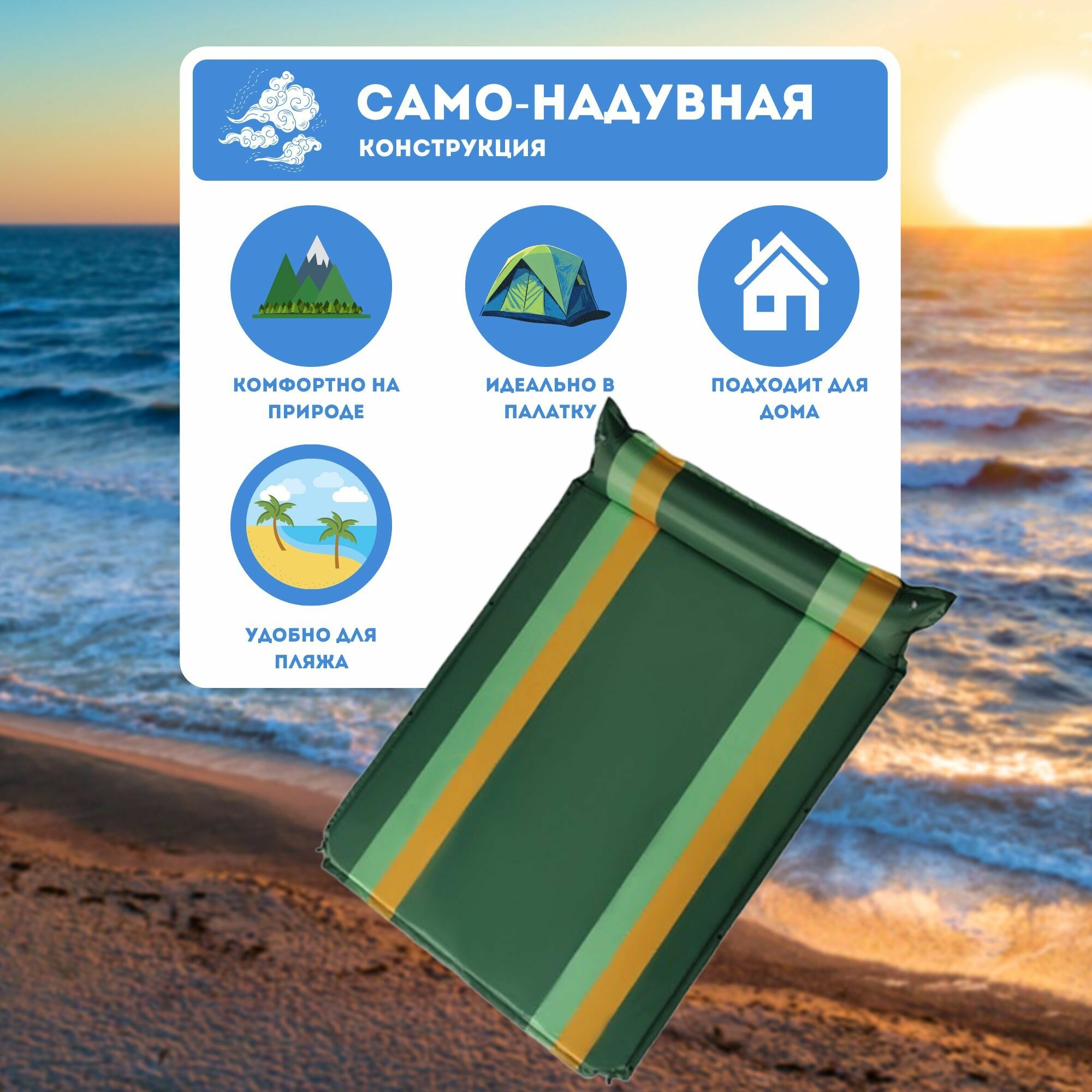 Коврик туристический самонадувающийся двухместный (толщина 3 см) YT-001B интересное: