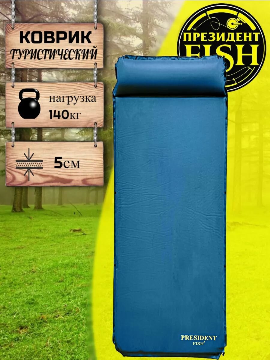 Коврик самонадувной "PRESIDENT FISH" 8815004 PF-05 синий интересное: