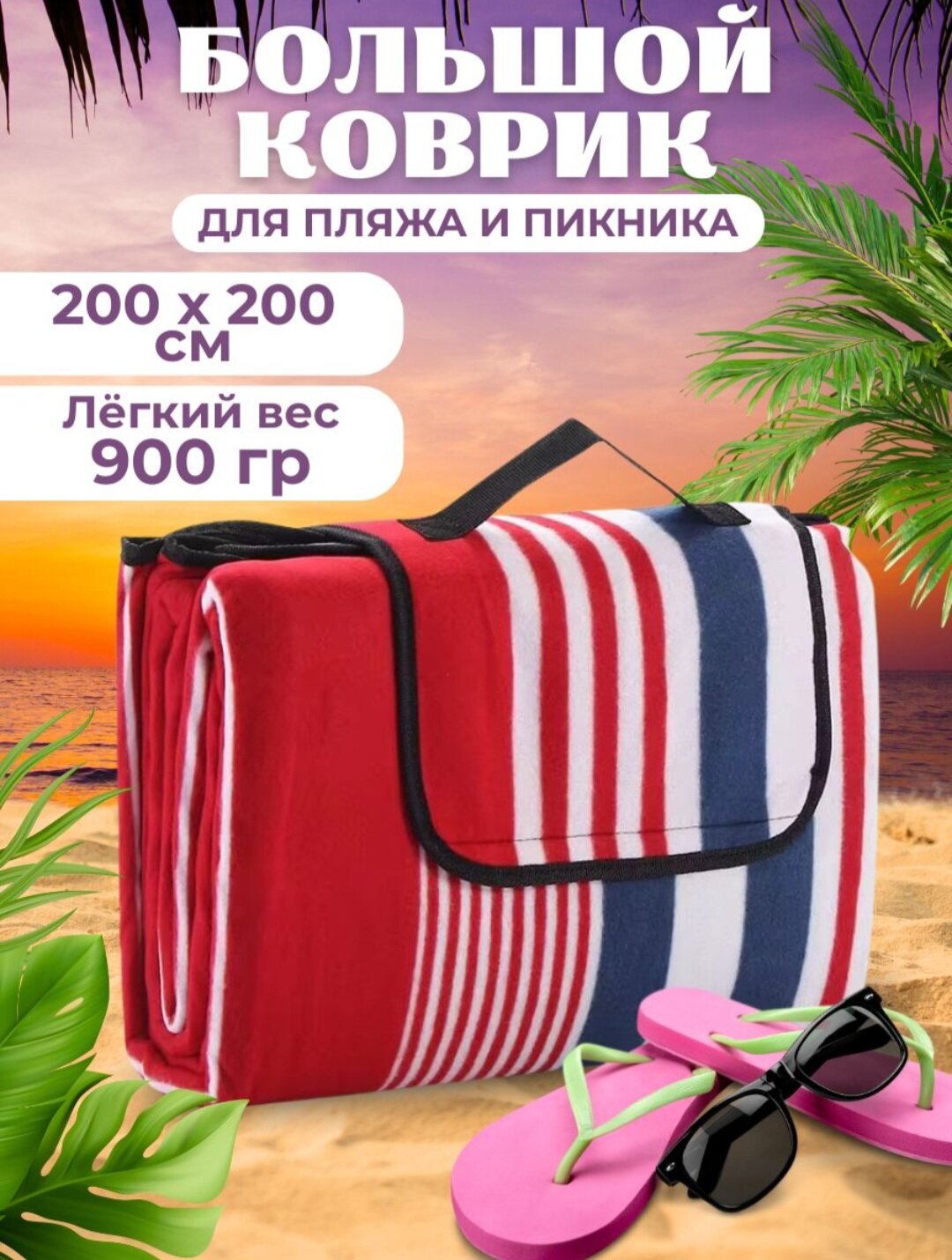 Пляжный коврик подстилка для пляжа и пикника 200*200 интересное: