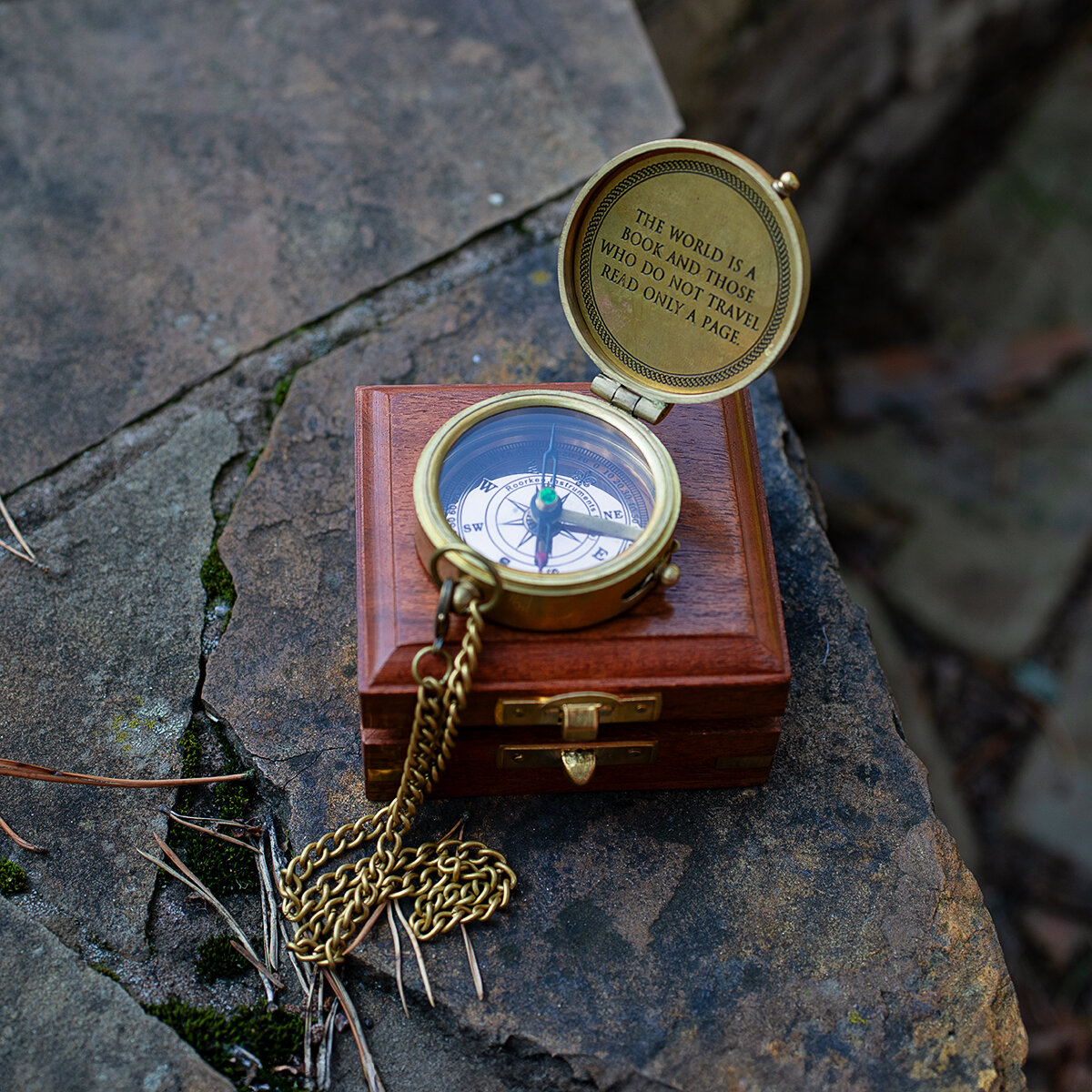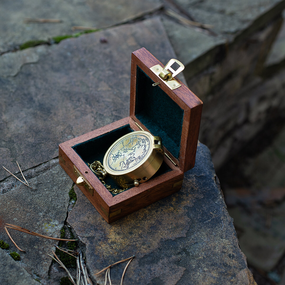 Купить Компас на цепочке с изображением "карты" в деревянной шкатулке с якорем