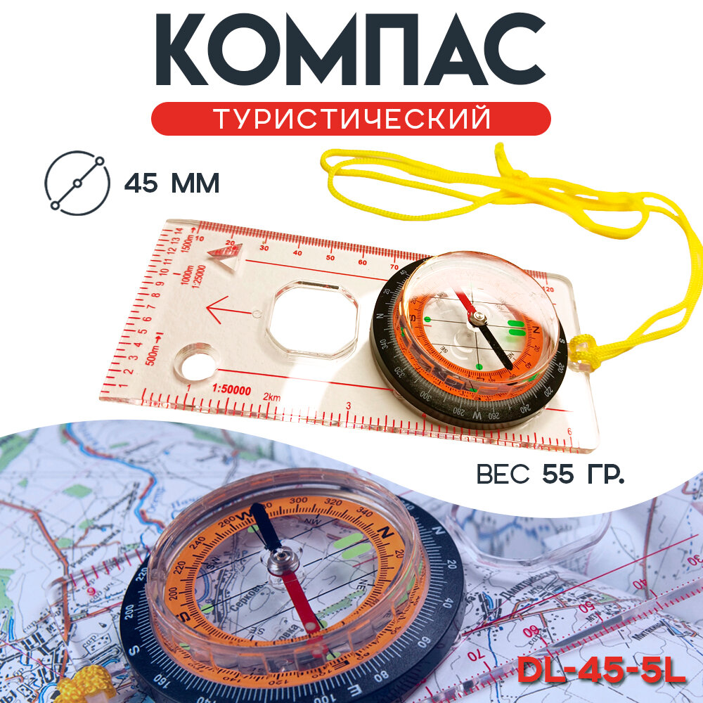 Компас туристический тактический спортивный DL-45-5L, с линейкой интересное: