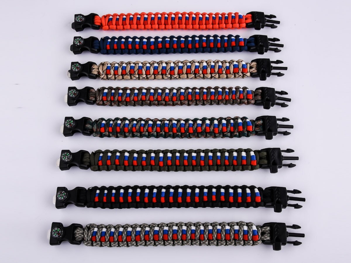 Браслет для выживания 4в1(паракорд, компас,свисток,огниво),многоцветный, 25.5 × 2.5 см,микс